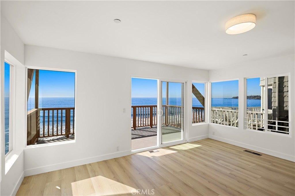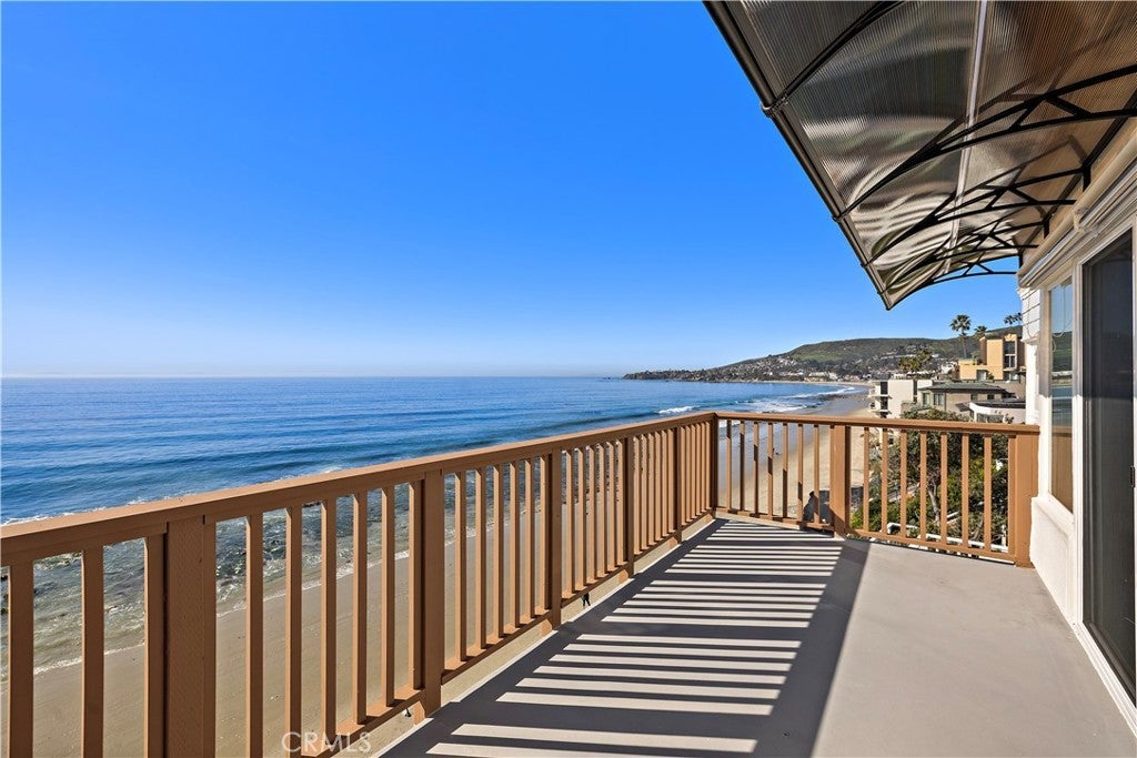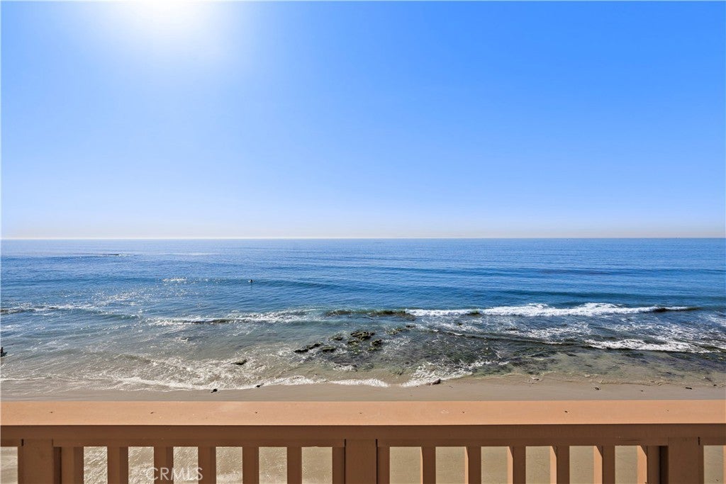 Welcome to this stunning, fully remodeled oceanfront residence, ideally positioned directly on the shoreline. This exceptional coastal retreat places the ocean at center stage, offering uninterrupted whitewater and coastline views. Step outside to experience refreshing sea breezes, breathtaking sunrises, and the soothing rhythm of the waves that define everyday living by the sea. The interior is bright, airy, and thoughtfully designed to seamlessly connect indoor and outdoor spaces. Coastal-chic finishes complement the panoramic ocean views throughout the home, which features three bedrooms and three beautifully updated bathrooms. The main level includes two bedrooms and a two fully remodeled bathroom with a walk-in shower. The main level is dedicated to an impressive, fully remodeled kitchen equipped with top-of-the-line appliances and elegant stone countertops, creating an exceptional cooking and entertaining experience. The kitchen opens effortlessly to the living and dining areas, all showcasing sweeping whitewater ocean views. From here, step onto the expansive ocean-view deck, complete with an awning for daytime shade—an ideal setting for enjoying coastal days and evening ambiance under twinkling lights. A striking spiral staircase leads to the lower level, which offers a third bedroom and bathroom, along with a spacious ocean-view family room. This inviting space features a full wet bar with a wine / beverage refrigerator and sink. The family room opens to an additional ocean-facing deck, perfect for taking in spectacular sunset views. The property also includes private access to a shared ocean-view deck and steps leading directly to the sand. Ideally located within walking distance of Laguna Beach’s renowned restaurants, boutique shops, trolley stops, and celebrated art galleries, this home offers the ultimate blend of luxury, comfort, and coastal lifestyle