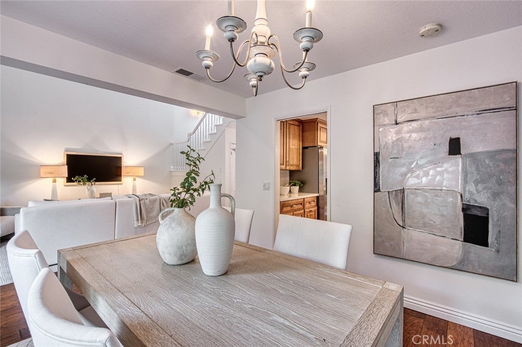 Welcome to this beautifully maintained townhome that blends comfort, functionality and timeless style. Located in the exclusive Ville de Cerise gated community, which is known for its beautiful French-style architecture and low-density with only 48 homes. Thoughtfully designed living spaces are filled with natural light, creating a warm and inviting atmosphere throughout. Rare floor plan with a living room, formal dining room AND a separate family room. The well-appointed kitchen offers ample storage and workspace and features beautiful quartz surfaces, newer dishwasher, stove and refrigerator, and distinctive drop lighting. The bedrooms are generously sized, providing peaceful retreats. One of the bedrooms overlooks the beautiful slope and the other can serve as both a bedroom and a home office with it's built-in features and both bedrooms have walk-in closets. The bathrooms feature clean finishes and practical layouts; one with a step-in shower and the other with a large bathtub. Outside, enjoy a private space ideal for relaxing or entertaining, and the location backing to the lush slope is simply gorgeous. Large two car garage with built-in cabinetry, a sink and epoxy flooring. The Ville de Cerise community offers a pool and spa and has hiking and biking trails in the adjacent canyon. The HOA also re-piped and re-roofed every home, and re-paved the community. Terrific Laguna Niguel location that offers easy access to local amenities, schools, transportation and jst minutes to the Dana Point Harbor.