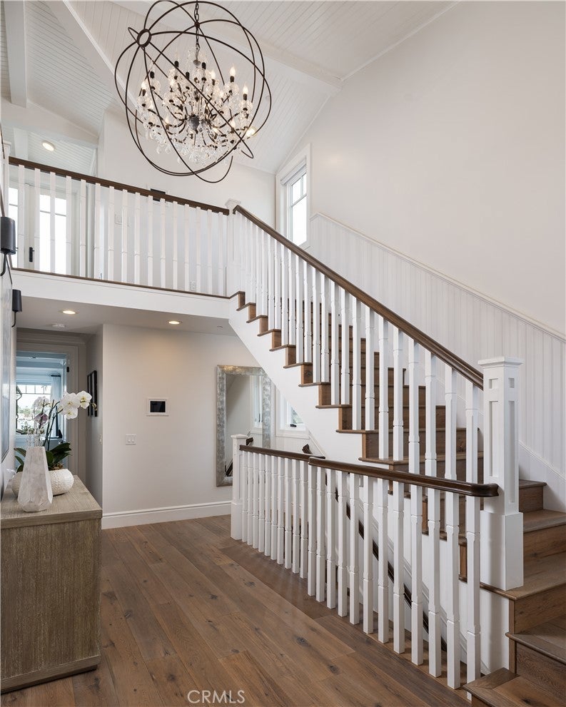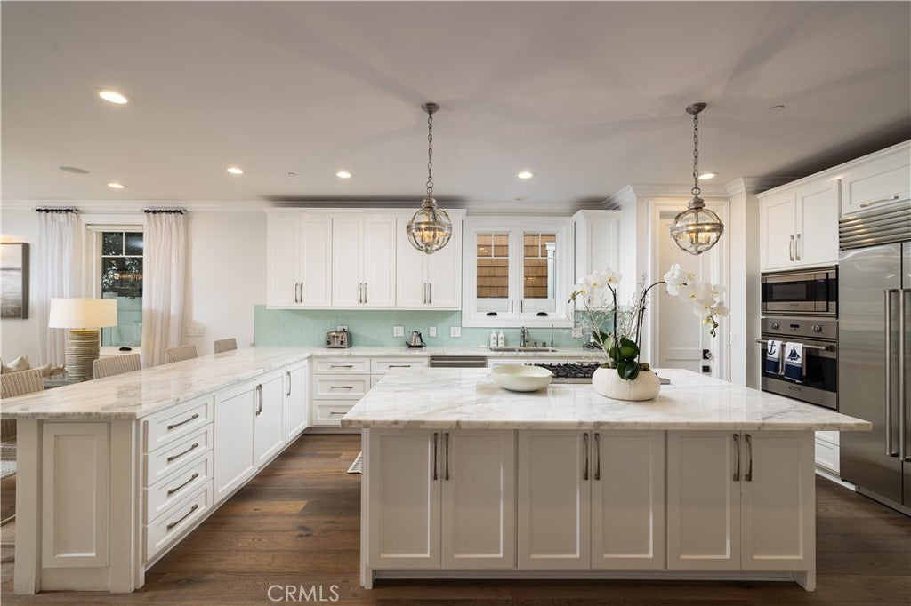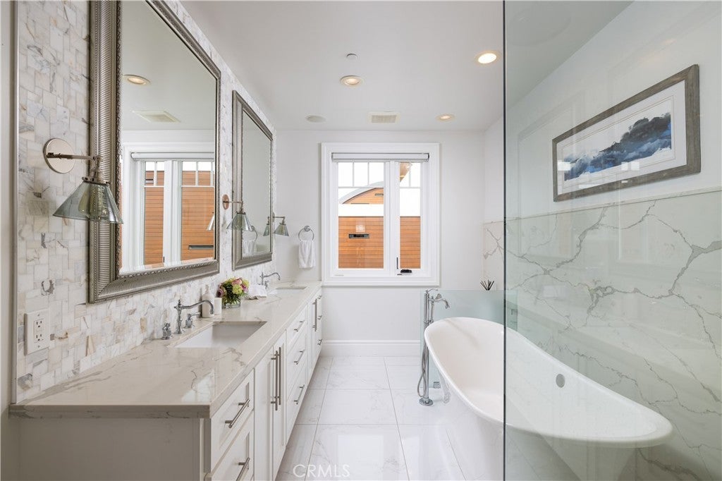 Known as the “Nautical Haus,” this chic seaside residence embodies refined coastal living in Newport Beach’s coveted Peninsula Point. Thoughtfully designed across three levels, the home blends timeless elegance with modern sophistication, offering light-filled interiors, tasteful finishes, and a seamless indoor-outdoor lifestyle. The main level showcases an open-concept floor plan ideal for entertaining, where the living and dining areas flow effortlessly into a gourmet kitchen anchored by a striking Calacatta marble island. Custom cabinetry, premium appliances, and designer lighting create a polished yet welcoming atmosphere. An enclosed front patio extends the living space, capturing ocean breezes and the relaxed energy of the Peninsula. Upstairs, a stunning primary suite offers tranquil bay views and a spa-inspired bath with dual vanities, a soaking tub, and a walk-in shower. Beautifully appointed guest suites provide comfort and privacy, making the home equally suited for everyday living or a luxurious beach retreat. Indoor-outdoor enjoyment continues with an oversized second-level deck and a third-floor viewing deck where you can take in harbor activity and passing yachts. Additional highlights include an elevator servicing all levels, elegant statement chandeliers, and a Control4 smart home automation system for effortless living. A two-car garage completes this move-in ready coastal home. Ideally positioned just moments from The Wedge, Newport Harbor, Balboa Beach, the ferry, and the Fun Zone, Peninsula Point offers a quieter, less-traveled setting at the tip of the Balboa Peninsula. World-class surfing, boating, paddleboarding, and waterfront dining are all within easy reach, delivering the ultimate Newport Beach lifestyle.