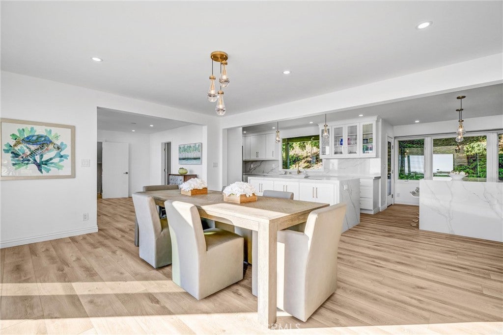 Welcome home to this stunning Mid Century Modern ocean view residence located in highly sought after Monarch Bay Terrace, very close to pristine beaches in Monarch Beach, and recently remodeled with top of the line materials, folding doors, new flooring all through-out, all new kitchen with waterfall islands, new top-of-the-line appliances, fixtures & lighting. The amazing brand new outdoors with gorgeous pool, spa with waterfall, all new lighting and landscaping, built-in BBQ & firepit, all beautifully designed for year-round enjoyment of a fabulous outdoor setting, ocean views & gorgeous sunsets. As you enter through double entry doors to this very private, fully gated courtyard that leads you to elegant front doors to the main level with an open floor plan, which offers sets of folding doors creating the best indoor outdoor living. Beautiful living room, dining room & awesome kitchen all to enjoy great ocean views and a newly built full bath to be accessed from pool & spa, and a convenient laundry room and walk-in pantry too. A few steps up to mid-level to an amazing great room with 3 sets of tall sliding doors open to a balcony for enjoying even more stunning ocean views, while you entertain family and friends. The second floor offers an elegant primary suite with fireplace, while it opens to its own balcony, 3 other bedrooms, 2 of which feature great ocean views overlooking gorgeous pool & spa with falls, 4th bedroom overlooks the very serene backyard with grown trees. With a very short drive, one can visit 3 of the fabulous five-star resorts of Montage, Ritz Carlton, Waldorf Astoria, and the adjacent Monarch Golf resort and their great restaurants as well as Dana Point Harbor & Laguna Beach, the Newport Harbor & Fashion Island in Newport are not too far away.