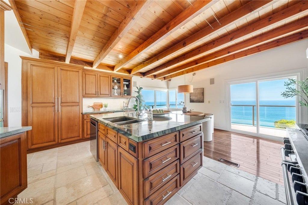 Set overlooking Laguna Beach on the serene and sought-after Coast Royale in Laguna Beach, 31272 Ceanothus Drive takes in panoramic views that stretch from the Montage Resort and Emerald Bay to the distant skyline of Long Beach. Catalina Island sits perfectly centered in the horizon, providing a daily front-row seat to the ever-changing, remarkable sunsets. A spacious deck off the main living area invites the sort of outdoor living we treasure in Southern California, providing a perfect setting to unwind and take in the tranquility. It’s an inspiring backdrop for calm mornings, creative thinking, or simply enjoying the moment. Inside, the home features soaring beamed ceilings in the living room and beautiful hardwood floors that add warmth and character throughout. The kitchen and living areas flow seamlessly to the outdoor spaces, creating an expansive, view-filled space to relax or entertain. The kitchen is a centerpiece for the home - outfitted to encourage your inner chef in an inspriing setting. The primary suite is privately situated and generously sized, with whitewater views that greet you each morning. Open the windows and let the rhythmic sound of crashing waves lull you to sleep. In addition to the main living areas, the home includes several versatile flex spaces to suit your lifestyle. One room features built-in shelving and a custom desk, making it ideal for a home office. Another space offers the perfect setting for a home gym or creative studio. An oversized laundry room adds extra function and convenience, with room for storage or expansion. The beach is just a short jaunt, and a favored 'locals' park and restaurants allow you to enjoy life without leaving your neighborhood. 31272 Ceanothus Drive a wonderful opportunity to enjoy elevated coastal living in a peaceful Laguna Beach neighborhood, just minutes from the best of Laguna Beach and southern California!