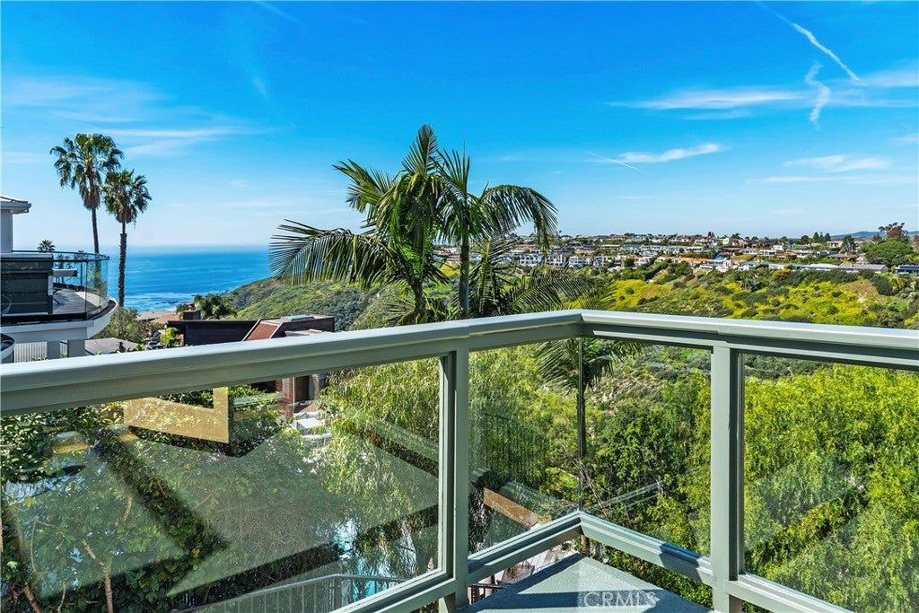Enjoy breathtaking ocean and canyon views from this beautifully maintained, ideally located 4-bedroom, 3-bathroom residence. Spanning approximately 3,092 square feet, this exceptional home is thoughtfully designed to offer both comfort and refined living. The open-concept kitchen, dining area, and living room flow seamlessly onto a spacious balcony, creating a beautiful setting for entertaining or relaxing while taking in the views. In addition to the main living areas, the home features an office, and a gym/media/game room. The kitchen showcases custom cabinetry and opens to the dining and living room. The primary bedroom, located on the upper level, features a walk-in closet and stunning ocean and hillside views. Each level of the home opens to multiple decks or a patio with a jacuzzi, providing effortless indoor-outdoor living. A separate laundry room with a sink and custom built-ins adds convenience and functionality. Step outside to your private backyard oasis, complete with beautifully landscaped pathways. The nearly half-acre lot is surrounded by mature landscaping and offers a large private driveway and a two-car garage. Conveniently located near highly regarded elementary, middle, and high schools, and just minutes from Laguna’s beaches, shops, galleries, tennis courts, playgrounds, and scenic hiking trails, this property combines luxury, privacy, and an exceptional coastal lifestyle.