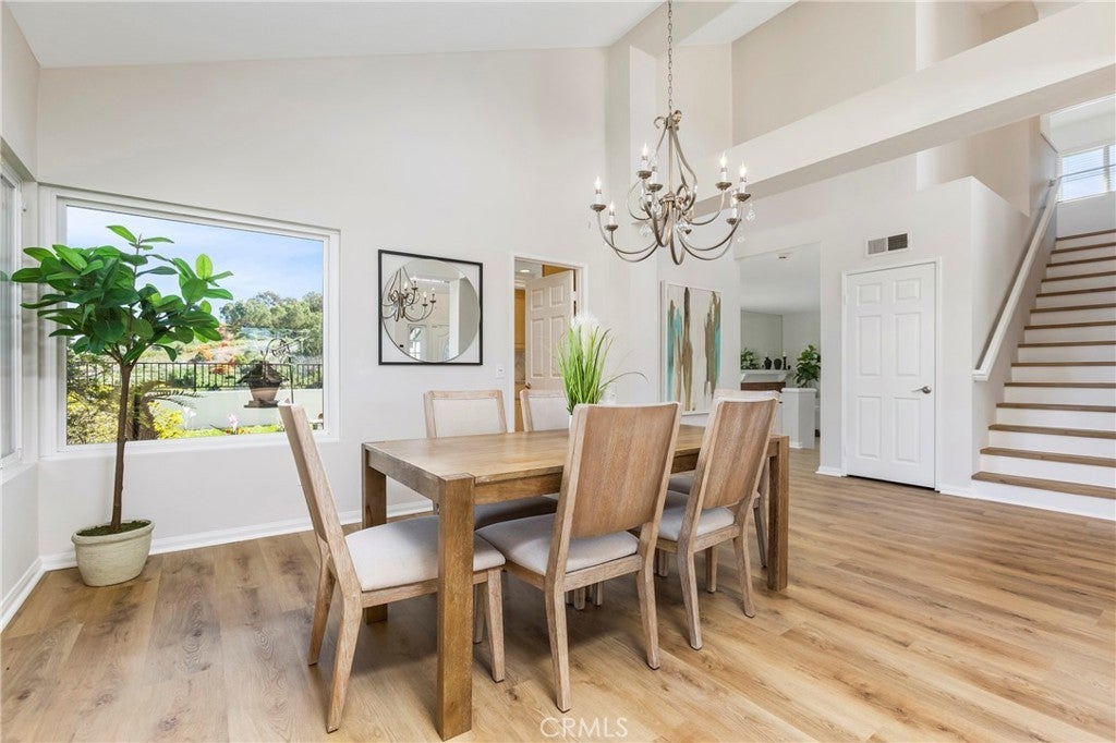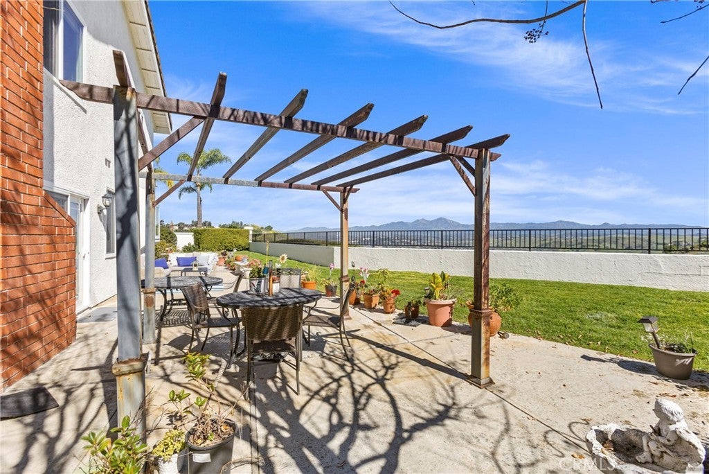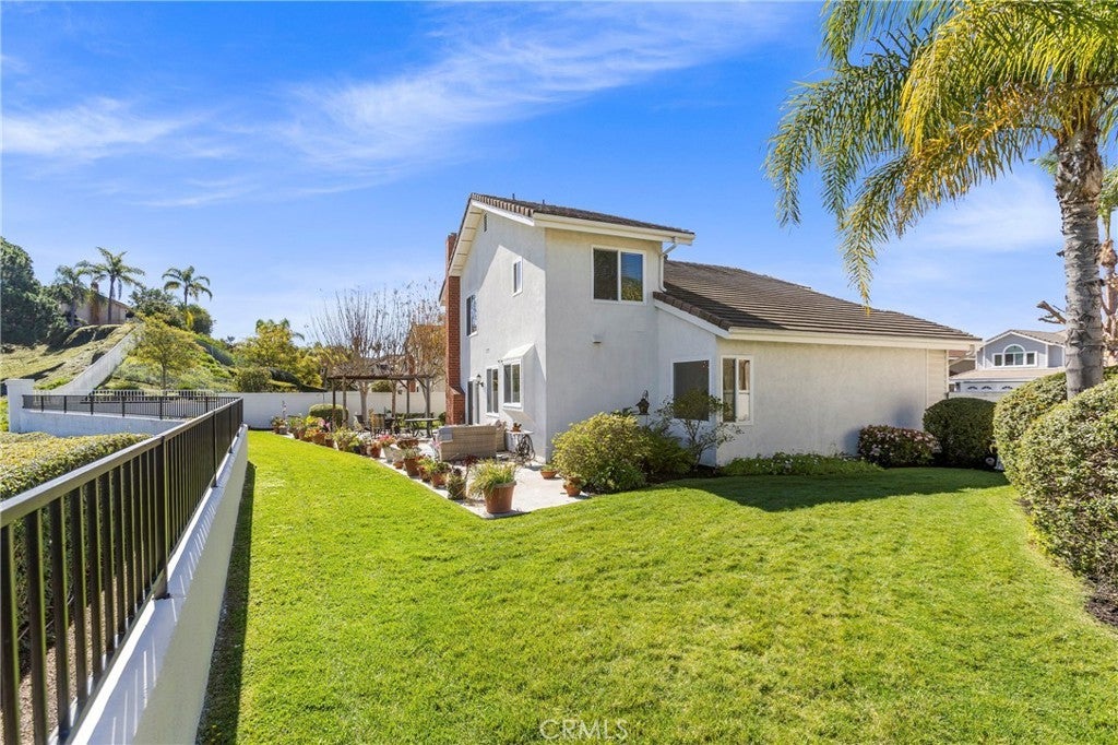 VIEWS VIEWS VIEWS- END OF CUL DE SAC WITH HUGE LOT. Welcome to 4 Precipice with an oversized premium lot, this 3 bedroom, 2.5 bath home with a 3-car garage captures sweeping Saddleback Mountain and valley views with exceptional privacy and usable outdoor space — a rare combination in Laguna Niguel. Set above rolling greenbelts and natural open space, the property offers panoramic vistas stretching across the canyon and surrounding ridgelines. The expansive backyard features a large grass lawn, mature landscaping, and an extended patio area ideal for entertaining, outdoor dining, or enjoying the peaceful setting. With generous lot dimensions and no homes directly behind, the yard provides both openness and seclusion. Inside, soaring ceilings and abundant natural light create an airy, welcoming atmosphere. Large windows frame scenic outlooks and enhance the home’s connection to its elevated setting. The formal living and dining areas offer comfortable gathering spaces, while wide-plank luxury vinyl flooring flows seamlessly throughout, adding both durability and modern appeal. The kitchen overlooks the backyard and views, featuring granite countertops, warm wood cabinetry, ample storage, and a functional layout that opens to adjacent living spaces. The family room is anchored by a classic brick fireplace and sliding doors that open to the patio, creating effortless indoor-outdoor living. Upstairs, view-facing windows continue to highlight the surrounding landscape, offering tranquil perspectives from the private bedroom spaces. The primary suite enjoys natural light and scenic outlooks that reinforce the home’s stunning views. Notable improvements include luxury vinyl plank flooring throughout, designer interior paint, newer windows, and a complete home re-pipe, providing both aesthetic appeal and long-term peace of mind. With its end-of-cul-de-sac location, oversized lot, 3-car garage, meaningful upgrades, and panoramic hillside views, 4 Precipice presents a rare opportunity to own a private, view-oriented property in one of Laguna Niguel’s most desirable settings.