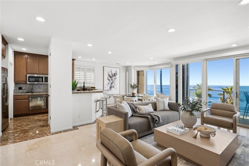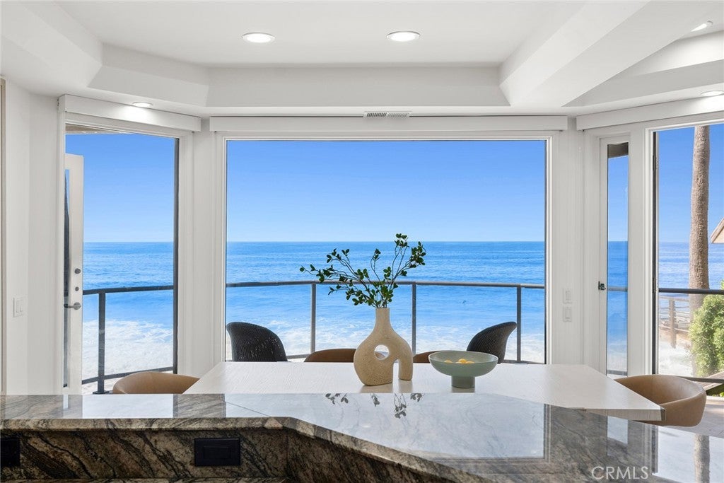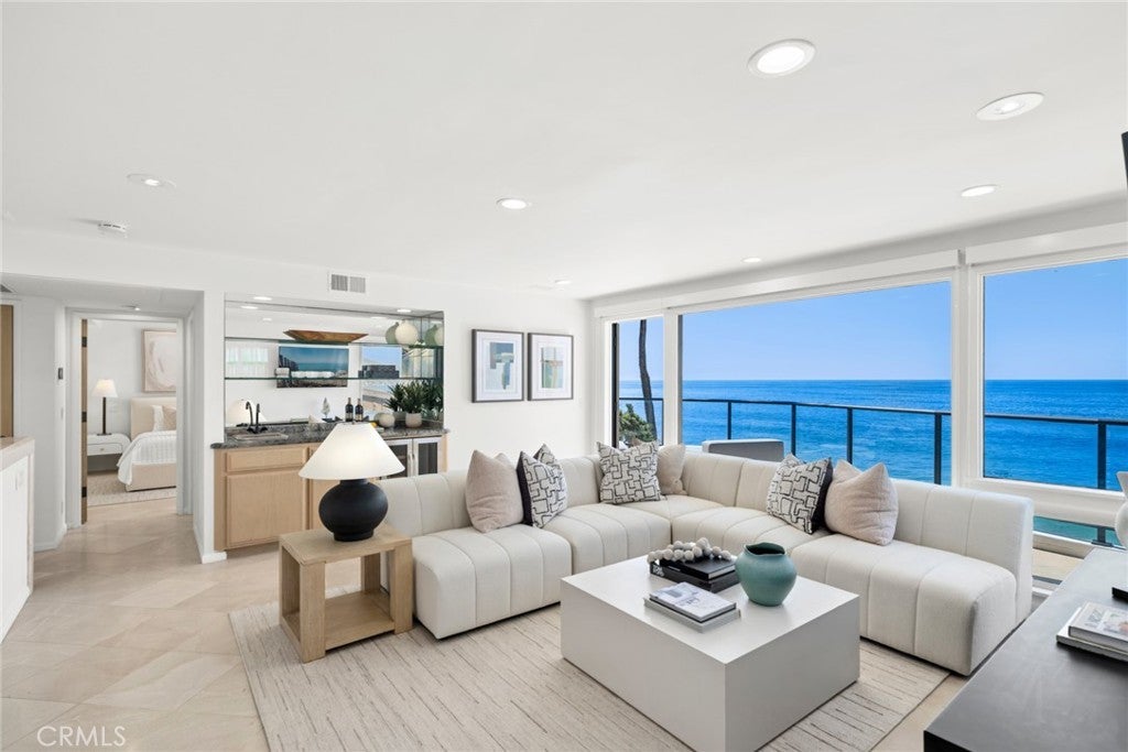 Experience elevated coastal living in this rare oceanfront property with direct beach access, overlooking breaking waves, Catalina Island, city lights, and the Pacific Ocean from its premier setting within Laguna Beach Village. Recently upgraded, the property offers unobstructed ocean views and effortless access to dining, boutiques, and galleries that define Laguna’s lifestyle. Floor-to-ceiling windows capture sweeping ocean vistas and natural light throughout the main living areas, which open to multiple private decks. The property consists of three separate residences, each with private beach access, outdoor space and individual entrances. Outdoor living areas include an expansive oceanfront patio and decks designed for entertaining and relaxation while enjoying panoramic coastline views, sunsets, and the sound of the waves. The top residence is approximately 1,700 square feet with two bedrooms and two-and-one-half bathrooms. The open floor plan includes a flexible room that may function as a bedroom or an office. The primary suite enjoys ocean views from bed and opens to private balconies overlooking the ocean. The middle residence is the largest of the three and features a spacious design for comfortable everyday living and entertaining. Encompassing approximately 2,613 square feet with three bedrooms and three bathrooms, the two-level layout offers a seamless open floor plan oriented toward the coastline. The main living areas flow to an expansive resort-style deck, while additional private balconies extend from the bedrooms. A secondary living room enjoys expansive coastal views, creating an inviting space for refined living. The lower residence offers approximately 1,737 square feet with two bedrooms and two bathrooms, an additional living room provides a comfortable gathering space with a built-in wet bar, access to a spacious deck, and direct access to the sand. A gated entry, multiple garages, and a private driveway provide ample parking. Ideally located within Laguna Beach Village in the HIP District, the property offers convenient access to renowned restaurants, galleries, shops, beaches, and scenic coastal trails. World-class resorts including Montage Laguna Beach, Surf & Sand Resort, and The Resort at Pelican Hill are also nearby. This property presents a rare opportunity to own an oceanfront compound in one of Laguna Beach’s most desirable coastal locations, ideal as a second home, a full-time residence, or multi-generational retreat.