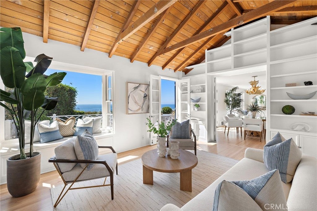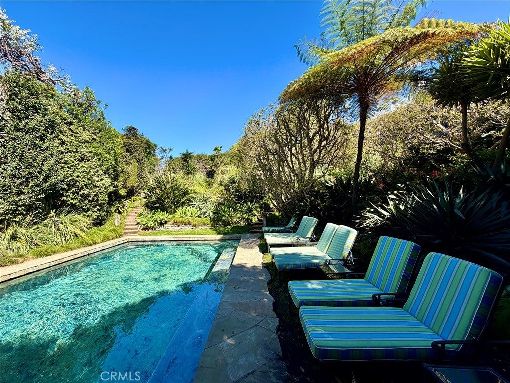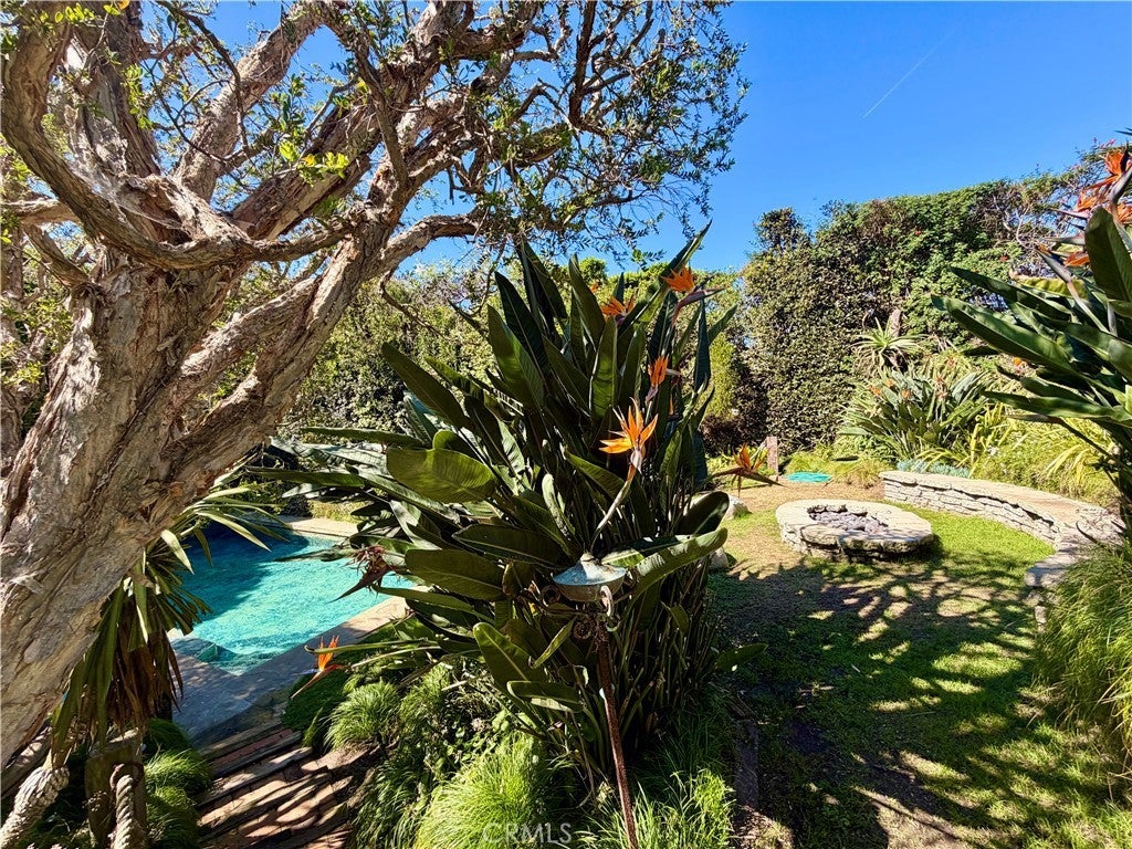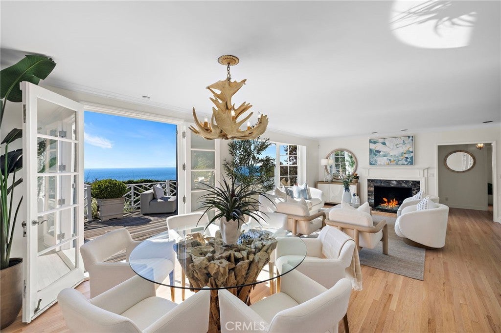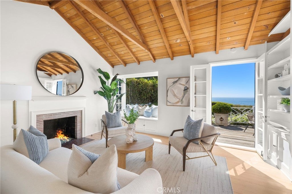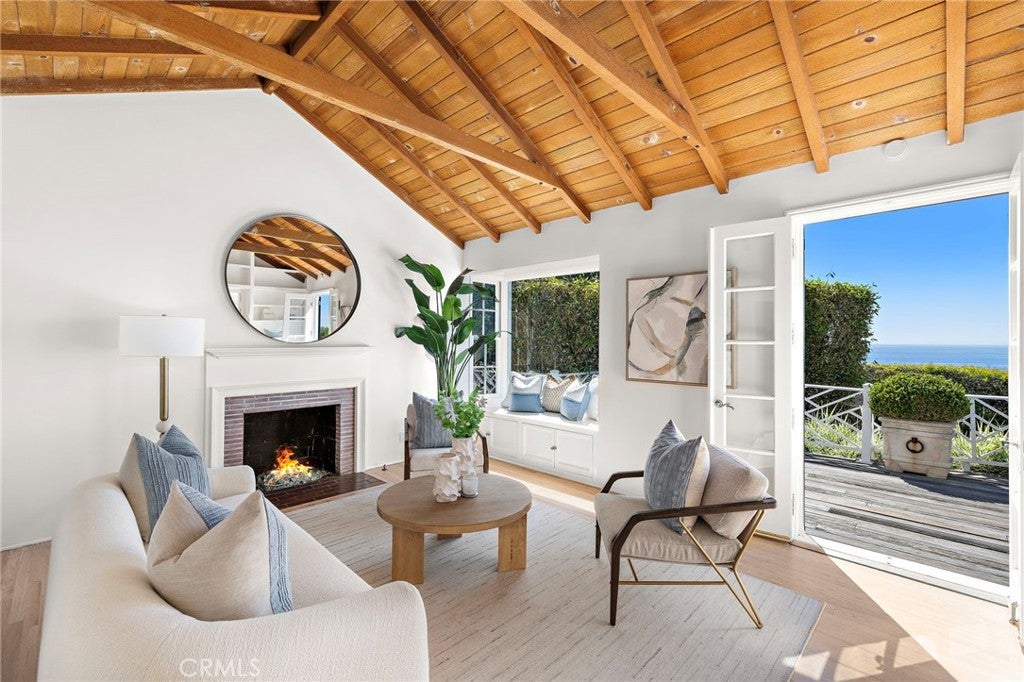 Perched above the Pacific on the ocean side of Coast Highway, this exceptionally private South Laguna estate offers a rare opportunity to own over 16,000 square feet of lush, tropical paradise with breathtaking, unobstructed ocean views and Island views. This light-filled residence features 3 bedrooms, 3 bathrooms, plus a versatile office/gym and a dedicated library retreat, where a stunning fireplace creates the perfect setting for quiet moments. A second fireplace anchors the main living room, enhancing the home’s warm yet refined coastal elegance. Expansive windows and doors seamlessly connect indoor and outdoor living, opening to a generous ocean-view deck off the living and dining areas—ideal for entertaining or soaking in endless sunsets. The grounds feel like a private resort. Mature, tropical landscaping surrounds a large pool, fire pit, spa, and multiple outdoor living areas designed for both relaxation and entertaining. A welcoming front patio offers the perfect place to unwind just above the shoreline. Inside, rich hardwood floors run throughout, complementing the home’s airy, coastal aesthetic. Every space is thoughtfully positioned to capture natural light, ocean breezes, and the soothing sound of waves. Located just steps from the beach and within walking distance to South Laguna’s charming restaurants, coffee shops, and shops, this home embodies the ultimate Laguna Beach lifestyle—where privacy, nature, and luxury converge.