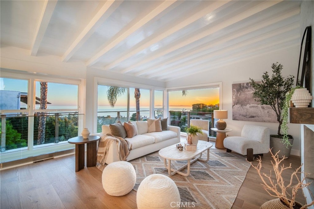Take in sweeping panoramic views of Catalina and San Clemente Islands, with the iconic Hotel Laguna in the foreground and the soothing rhythm of waves below. Situated in the lower Mystic Hills enclave of Laguna Beach just moments from the village, this fully remodeled ocean-view residence captures breathtaking sunsets and shimmering city-light views. Designed to maximize its extraordinary setting, the open-concept floor plan welcomes you through a tranquil garden terrace entry and opens to dramatic ocean views. The living room is defined by floor-to-ceiling windows framing expansive ocean vistas, a sleek gas fireplace, and seamless flow to both the kitchen and an ocean-facing terrace—creating effortless indoor-outdoor living. The main-level primary suite offers a walk-in closet and a spa-inspired bath, highlighted by a private outdoor rain-head shower and tranquil water feature. A secondary bedroom on the main level opens to an expansive deck with sweeping coastline views. The lower level reveals a spacious family room flanked by two additional bedrooms and two upgraded bathrooms, all enjoying ocean views and direct access to a covered terrace and open sundeck. A detached art studio provides flexible space for creative pursuits or a private office. The grounds form a curated coastal sanctuary, showcasing rare specimen palms, raised garden beds, and mature fruit trees. Extensive upgrades include new HVAC, updated electrical panel with 220V EV outlet, updated kitchen wiring, new sump pump, 50-year roof, a newly remodeled downstairs bath, and added garage storage. A rare, move-in-ready offering combining panoramic island views and proximity to Laguna Beach’s renowned coastline and village lifestyle.