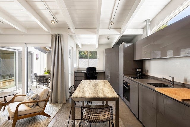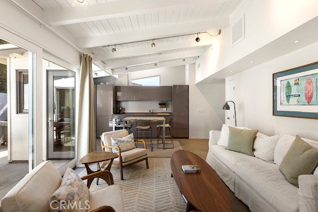 Tucked away in one of Laguna Beach’s most sought-after coastal pockets, this beautifully designed 1 bedroom, 1.5 bath ADU offers a rare blend of privacy, style, and effortless indoor-outdoor living just moments from the sand. Thoughtfully designed with high-end European finishes throughout, the space features soaring wood-beamed ceilings, sleek concrete floors, and an abundance of natural light that creates a clean, modern coastal feel. The open-concept living area flows seamlessly into a streamlined kitchen with minimalist cabinetry and a functional dining or workspace, making the home feel both elevated and highly livable. The bedroom is warm and inviting with vaulted ceilings and direct access to a private patio, while the spa-inspired bathroom showcases a dual vanity and a beautifully finished walk-in shower, complemented by a convenient powder room for guests. Outside, enjoy your own secluded patio surrounded by lush landscaping—perfect for morning coffee or unwinding after a day at the beach. Ideally located just a 1–2 minute walk to the world-class Montage Laguna Beach, Treasure Island Beach, and Treasure Island Park, with Lang Park and nearby greenbelt hiking trails just around the corner, this is coastal living at its best—just moments from Treasure Island Beach and Laguna’s beautiful hidden coves.