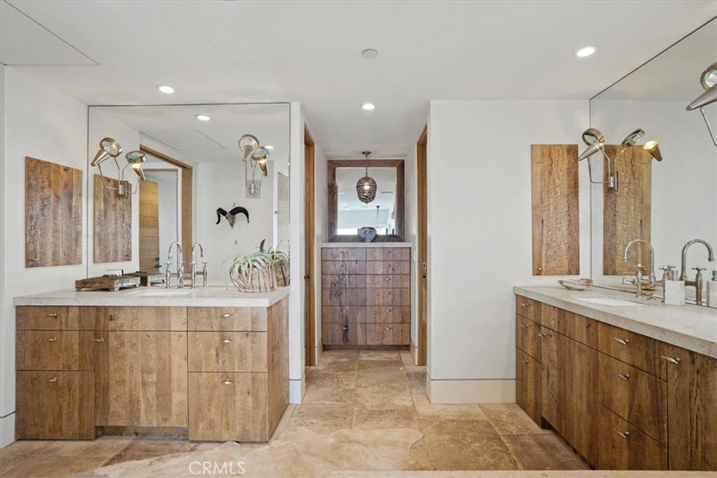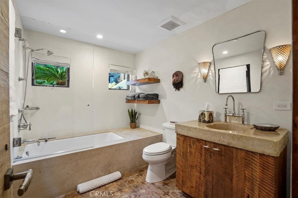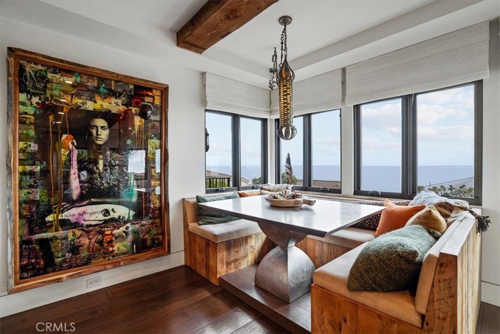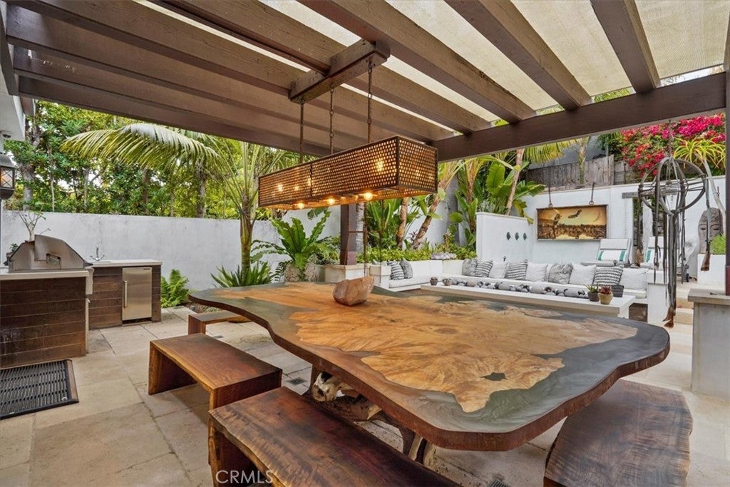 Perched above the steps to the famed Woods Cove beach, in a town with roots as an artist colony, sits an exceptional home that could be considered a work of art in itself. Enter the main living space and the natural, earthy elements of this recently reimagined residence welcome you with a sense of relaxation and calm. Take in the stunning views across the Pacific from almost every space in this home, from the comfortable living room into the fully outfitted top of the line kitchen and up to the primary retreat, which stands alone on the top floor. Stay to unwind, or entertain with ease as you take advantage of the open concept layout – flow from the great room to the kitchen/dining space and through the sliding glass paneled doors, which open to the magical backyard setting featuring a built in BBQ, extra-large custom dining table, relaxing spa and a tremendous fire feature that will warm you on the coolest seaside evenings. Beyond the sense of wonder and incredible detail, this home features all the finest amenities including security, central air, indoor and outdoor surround sound, a reverse osmosis drinking water system, wine closet, steam shower, infrared sauna and an in-home Tonal gym set up. The street level of this home features a bedroom and bathroom with its own separate entry to the street and direct access to the garage. Sitting directly across the street from the steps down to Woods Cove beach, a short distance to Laguna Beach’s fine dining and shopping, parks and hiking trails, this home has everything and more for the coastal vacation of your dreams, or an extended stay to cleanse the soul.