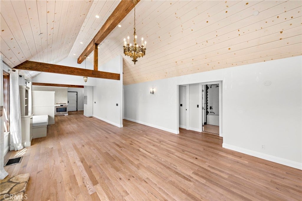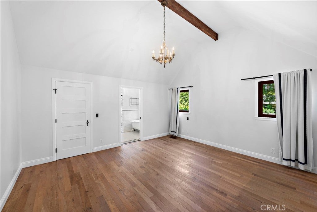 - Interior FeaturesBeamed Ceilings, Built-in Features, Cathedral Ceiling(s), Quartz Counters, Unfurnished, Bedroom on Main Level, Main Level Primary