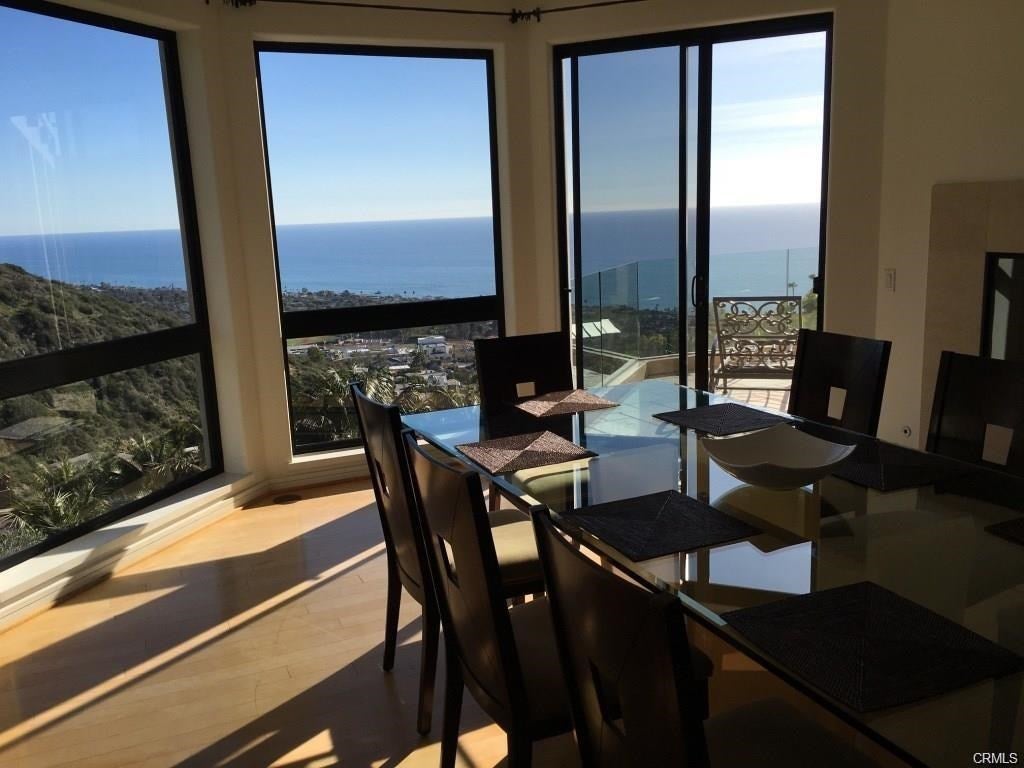 Located in the prestigious Mystic Hills, this stunning contemporary residence is situated on an ideal lot with panoramic ocean views and only few minutes from Laguna Main Beach. This amazing 5 bed 4 bath 4700 SQFT of modern living space, with a contemporary style boasting spectacular ocean views from every room, is offered furnished or unfurnished. Enter through the rare gated and private front courtyard with a fire pit and BBQ perfect for entertaining. Once inside, the spacious living room opens to a grand deck with a breathtaking panoramic ocean views, Canyon and city lights. The main floor features a master and full bath as well as a gourmet kitchen with Viking double ovens, top of the line appliances and walk in pantry. Adjoining the Chef's kitchen is the formal dining room with walls of glass showcasing the stunning ocean views. The upper level features a spacious master suite with generous walk in closet and ocean view bathroom, additional bedroom suites , and large family room all entertaining panoramic ocean views. Other Amenities include, 3 fireplaces, contemporary furnishings, and theft security system. Complimented by a 3 car attached garage, trash and gardener included, making this a unique package for rent in Laguna Beach.
