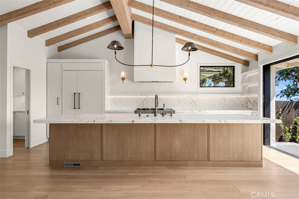 Welcome to 709 Emerald Bay, a beautifully reimagined coastal retreat located within the prestigious guard-gated enclave of Emerald Bay. This single-level, three-bedroom, three-bathroom residence spans just under 2,100 square feet and has been completely renovated down to the studs with high-end finishes throughout. The desirable U-shaped floor plan offers both functionality and privacy, complemented by soaring vaulted ceilings, wide-plank oak hardwood floors, and thoughtfully curated designer fixtures by Rocky Mountain. Every detail has been carefully curated by a designer to create a warm yet elevated coastal aesthetic. The chef’s kitchen features stunning marble countertops, custom sleek cabinetry, JennAir Appliances, a spacious walk-in pantry, and brass fixtures that will naturally patina over time. The adjacent dining area includes a wet bar, making it ideal for both everyday living and entertaining. Designed for seamless indoor-outdoor living, the home opens through expansive sliding glass doors to a newly landscaped deck and backyard. Both the main living room and the kitchen/dining areas enjoy direct outdoor access, creating multiple spaces to relax and entertain while taking in ocean breeze and views. Residents enjoy exclusive access to Emerald Bay’s premier amenities, including a private beach, resort-style pool and spa, tennis courts, clubhouse, and parks - all within a secure 24/7 guard-gated community. A rare opportunity to lease a fully renovated, turnkey home in one of Laguna Beach’s most sought-after coastal communities.