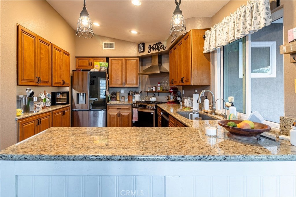 Incredible Single-Story Home on a Large 10,018 Sq Ft Corner Lot with RV Access in the Desirable North Lake Community of Lake Elsinore! This well-maintained three-bedroom, two-bathroom residence features newer flooring, an upgraded kitchen, and a dual-sided fireplace that enhances the open and light-filled floorplan. Dual pane windows throughout. Vaulted ceilings create a spacious feel throughout the main living areas. New HVAC, water heater & exterior paint. The primary suite offers a walk-in closet and dual sinks. Additional highlights include extra storage space in the garage attic, solar panels for energy efficiency, and an above-ground pool with a deck—perfect for outdoor entertaining and family gatherings. Ideally located near Launch Pointe, offering RV camping, boating, fishing, and waterfront dining, along with year-round outdoor recreation. Close to restaurants, multiple parks, schools, and local amenities. NO HOA makes this an even more attractive opportunity. A rare chance to own a single-story home with RV access in a prime Lake Elsinore location.