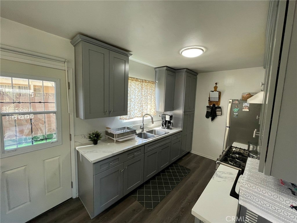 Remodeled 3-bedroom, 2-bathroom downstairs unit in a well-maintained fourplex located in the city of Montebello. This unit features a fully updated kitchen with quartz countertops, modern cabinetry, and laminate flooring throughout. Enjoy the convenience of an indoor common area laundry room with a separate dedicated space, along with a private backyard and front enclosure, offering added comfort and functionality. The property includes one carport space and one additional parking space. Conveniently located near major freeways including the 60, 10, 605, 5, and 710, providing easy access to Downtown Los Angeles, shopping centers, restaurants, and local amenities.