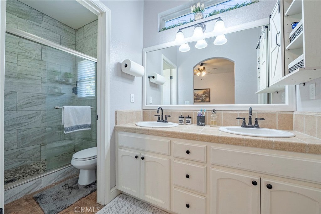 • Interior FeaturesCeiling Fan(s), High Ceilings, Open Floorplan, Pantry, Tile Counters, All Bedrooms Down, Bedroom on Main Level, Main Level Primary