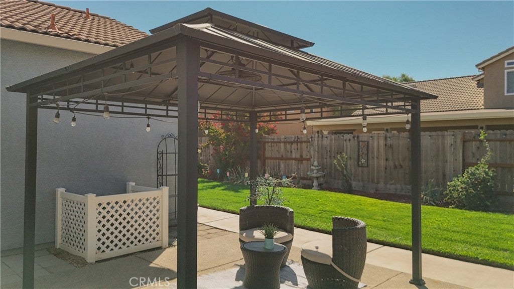 Elegance, serenity, and charm blend seamlessly within the highly desired American West gated community in Atwater! This coveted single story residence, 3 bedrooms, 2 bath  (4TH BEDROOM Possible,) built in 2005, offers 1,716 square feet of refined living space with LAMINATE and TILE FLOORING throughout. Spacious, inviting living room that flows gracefully into a formal dining area, and could be a flex space. The heart of the home is the sleek eat-in kitchen with QUARTZ COUNTERTOPS, beautiful peninsula, ample cabinets, which opens up to a cozy family room adorned with a charming fireplace. The expansive primary bedroom suite is a sanctuary of comfort, featuring a BARN DOOR for privacy, generous walk-in closet, dual vanities, and a primary bathroom suite with lovely REMODELLED SHOWER. Two additional well-sized rooms for family or guests. The home boasts of QUARTZ COUNTERTOPS IN BOTH BATHROOMS, vaulted ceilings, butler's pantry, custom window coverings, updated light fixtures, ceiling fans, central heating and air conditioning, a durable tile roof, and a dedicated laundry room. Dual-pane windows, panel doors, handy RV Plug on the side of the home, convenient cement walkways around home that enhance the home's appeal. Outside, you'll find beautifully manicured landscaping, providing a private retreat with gazebo for relaxation and shed. Amazing location near shopping, restaurants and freeway access.  Exclusive neighborhood park and playground, making it a perfect combination of comfort and convenience. Whether you're looking to upgrade, downsize, or settle into a well-maintained neighborhood, 2092 Patriotic Drive delivers it all. Don't wait!