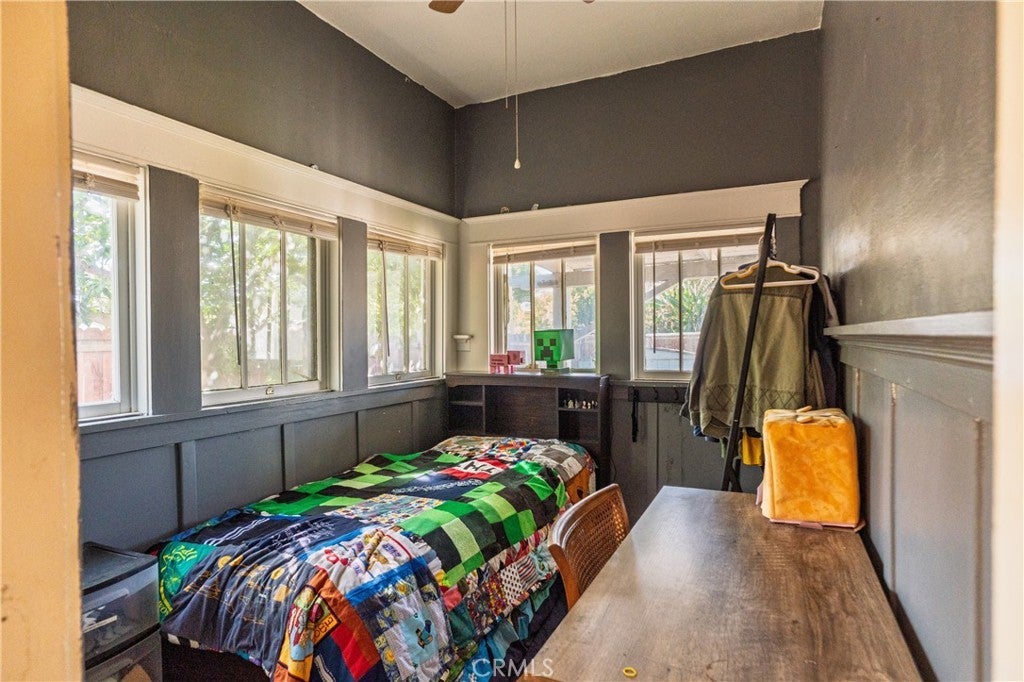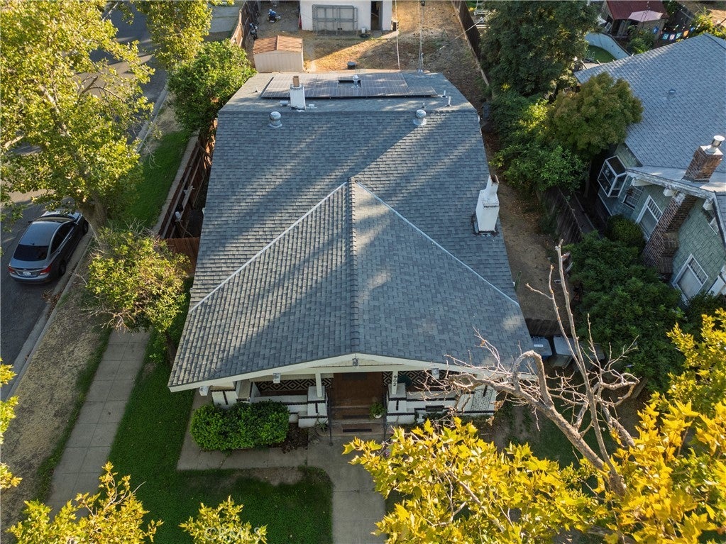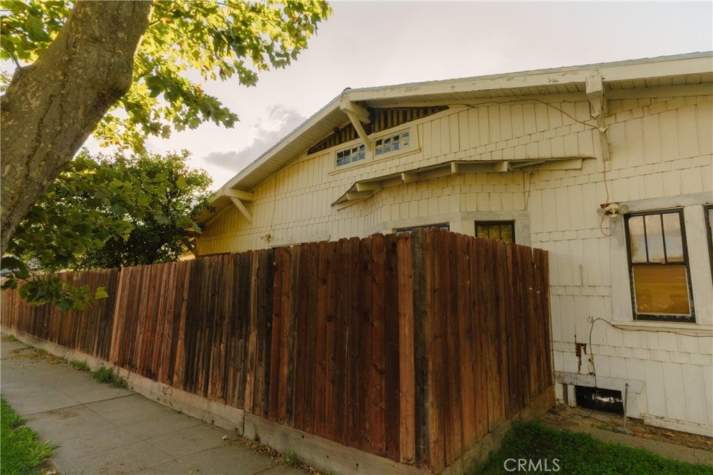 Charming Corner Lot Home with Modern Upgrades! The welcoming front porch features tile accents and classic wood siding. Step inside to a spacious family room with real wood flooring, stone facia details, a fireplace, and abundant natural light from large single-pane windows. The formal dining room boasts wood floors, a built-in hutch, high ceilings, and a ceiling fan. The functional kitchen includes ample cabinetry, Formica countertops, a stainless steel sink, gas oven, microwave, dishwasher, and laminate flooring. A bright sunroom at the back, surrounded by windows and linoleum flooring, adds extra space. The laundry room offers a sink, tankless water heater, and linoleum flooring for easy care. The primary bedroom features carpet and a walk-through closet. The bathroom includes a jetted tub and tile flooring. The second bedroom offers carpet flooring and a ceiling fan. Additional highlights include a basement, a detached two-car garage, and a large backyard with double side gates perfect for RV or boat parking. The home also features a durable composition roof and 15 paid-off solar panels, delivering long-term savings and energy efficiency. Located just minutes from downtown, parks, dining, and shopping, this property combines charm, functionality, and location appeal.