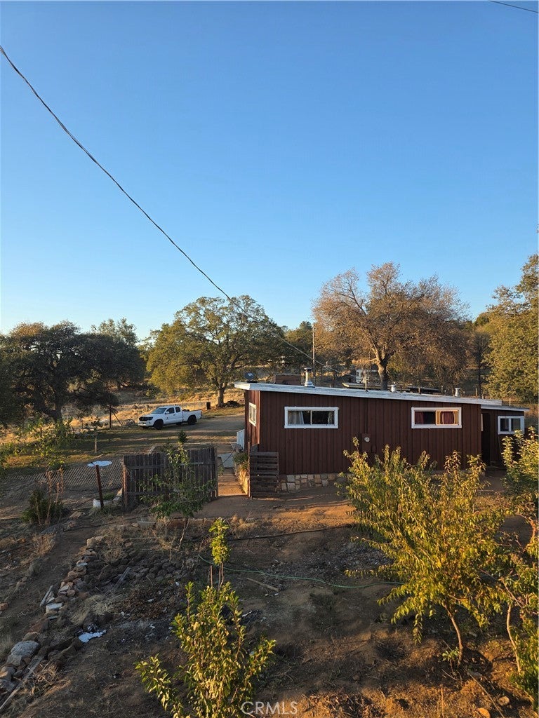 Discover the perfect blend of comfort and opportunity with this cozy 2-bedroom, 1-bath home nestled on approximately 3.74 acres in the peaceful foothills of Mariposa. Offering 1,016 sq. ft. of freshly painted living space, this warm, cabin-style residence features newly installed hardwood flooring and a welcoming atmosphere throughout. Just 1.2 miles from the main highway and less than 8 miles from the heart of Mariposa, the location provides both tranquility and convenience. The expansive property is fully enclosed with new barbed-wire fencing and offers endless potential — from gardening to small-scale farming or simply enjoying the open space. Mature fruit and vegetable trees already flourish across the land, creating a true homestead feel. From the backyard, take in the serene valley views and experience the peaceful charm that makes this property a true hidden gem in the foothills.