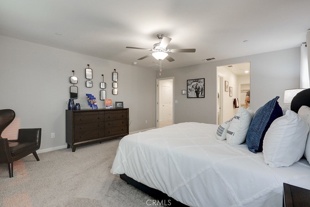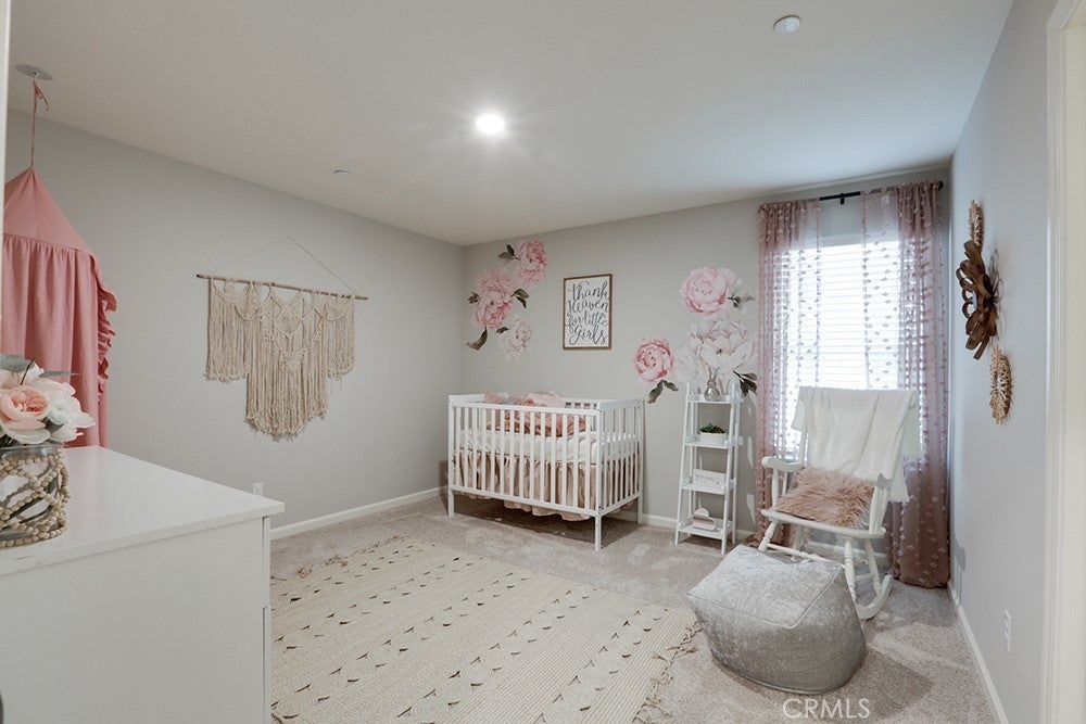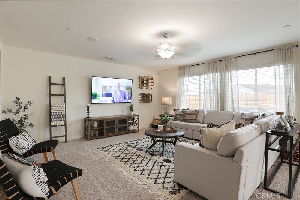 This spacious two-story, five bedroom, three bathroom home offers approximately 2,814 square feet of living space and is enhanced with 9’ ceilings. A bedroom and a full bathroom are located on the first floor just off the entry. The open-concept living area opens to a large kitchen featuring shaker-style cabinetry, quartz countertops with backsplash, a walk-in pantry, a center island with pendant lighting and snack bar, and Whirlpool® stainless-steel appliances including a range, microwave and dishwasher. Black finishes are standard throughout the home. The formal dining area is located adjacent to the kitchen. Upstairs is an open loft, the main suite and three additional bedrooms, as well as the indoor laundry room. The main suite has an adjoining bathroom with dual vanity sinks and a large walk-in closet. A solar system is included in the purchase price of this home!