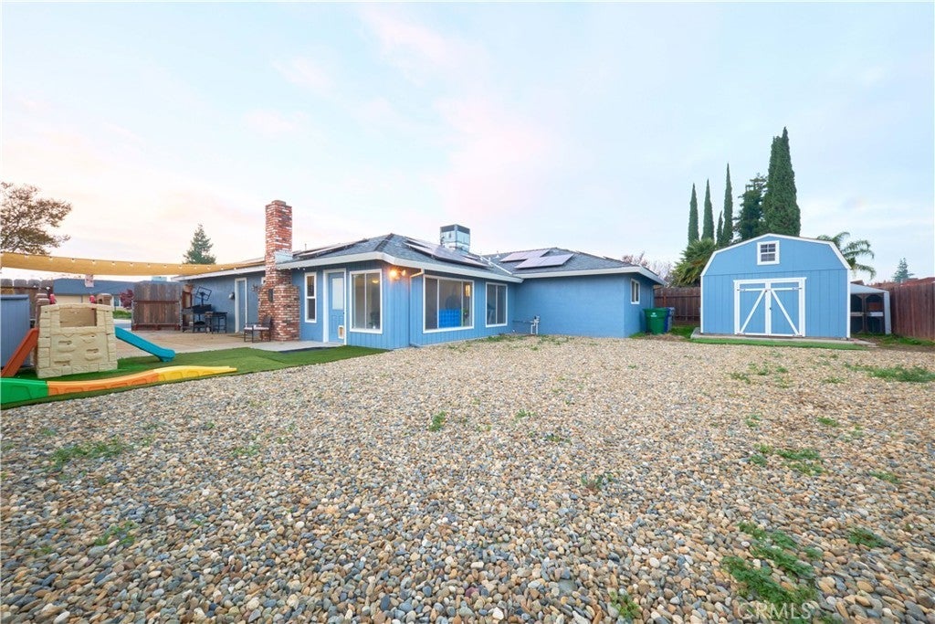 Welcome to this beautifully recently remodeled home offering a blend of modern style and timeless comfort. Throughout the interior, you’ll find attractive vinyl flooring, upgraded ceiling fans, and recessed lighting that brighten the open living spaces. The kitchen features granite countertops, stylish cabinetry, and soft close drawers for a polished, functional feel. A relaxing sunroom sits just off the living area, perfect for quiet mornings or casual gatherings. The bedrooms are generously sized, and the updated bathrooms include dual sinks, granite finishes, a new tub, and a beautifully tiled walk in shower in the primary suite. The 4th bedroom is a flex room which can also be converted to a second living room or game room. Outside, enjoy low maintenance arid landscaping, convenient RV parking, chicken coop, and a spacious 16x12 workshop on slab. Solar panels add valuable energy efficiency for lower utility costs. Come see this inviting property in person. Your next home is waiting.