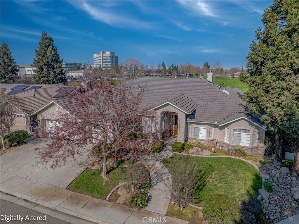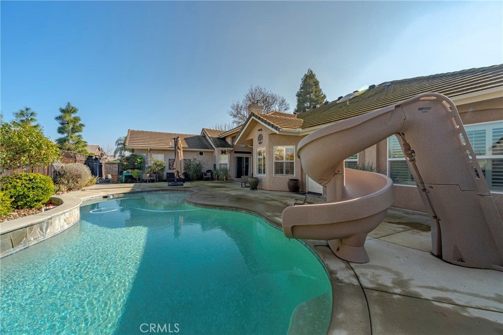 Welcome to this beautifully designed 4 bedroom, 3 bathroom home offering 3340 square feet of spacious and elegant living, tucked away on a quiet cul-de-sac in one of Merced's most desirable neighborhoods. Built in 2002 and set on a 10,454 sq. ft. lot this residence blends comfort, functionality, and timeless style. Inside, you'll find a thoughtful split-floor plan featuring a formal dining room, private office and an expansive great room that flows seamlessly into the gourmet kitchen- perfect for both everyday living and entertaining. The kitchen opens to the heart of the home and offers ample space for gatherings, while the inviting courtyard just off the dining room creates a charming indoor-outdoor experience ideal for morning coffee or evening conversations. The backyard is your own private retreat, complete with a beautiful swimming pool, raised planter boxes for gardening, and a spacious patio area ready for outdoor dining and entertaining. A three-car garage, central heating and air, and a classic tile roof complete this impressive property. This exceptional home offers the perfect combination of space, privacy and resort style living - all in a peaceful cul-de-sac setting.