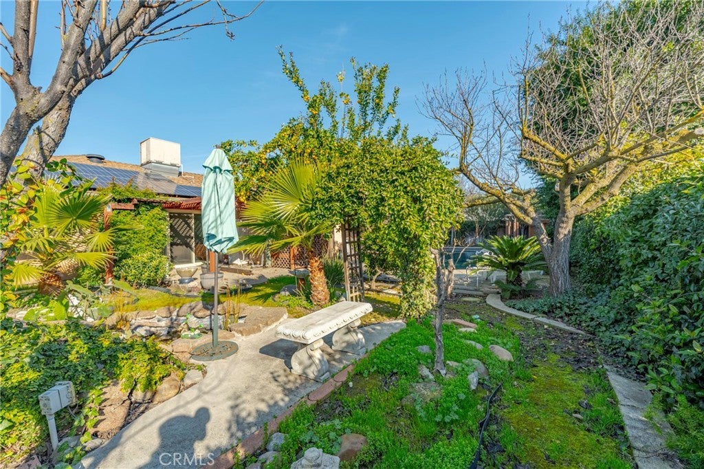 OWNED SOLAR...PEBBLE TEC POOL...NO MELLO-ROOS...NO FLOOD ZONE! Welcome to this beautifully updated 3-bedroom, 2-bathroom home in North Merced. Boasting 2,072 sq ft of living space on an expansive 8,767 sq ft corner lot in a peaceful cul-de-sac, this home offers both comfort and style. Step inside to a spacious entryway that opens to a formal living room, dining room and family room which features tall ceilings, a wood burning fireplace and built-in bookshelves creating an open and inviting atmosphere. The kitchen has been tastefully updated with Corian countertops and light wood cabinets, perfect for everyday living and entertaining. The primary suite features an enlarged en-suite bathroom complete with a walk-in shower, double shower heads, and a dual sink vanity. Step into the backyard retreat with an in-ground swimming pool finished with Pebble Tec, and covered patio ideal for relaxing or hosting gatherings. The home also includes owned solar (24 panels) for energy efficiency. Conveniently located near Merced College, Mercy Medical Center, schools, shopping and restaurants, this home combines luxury living with a prime location.