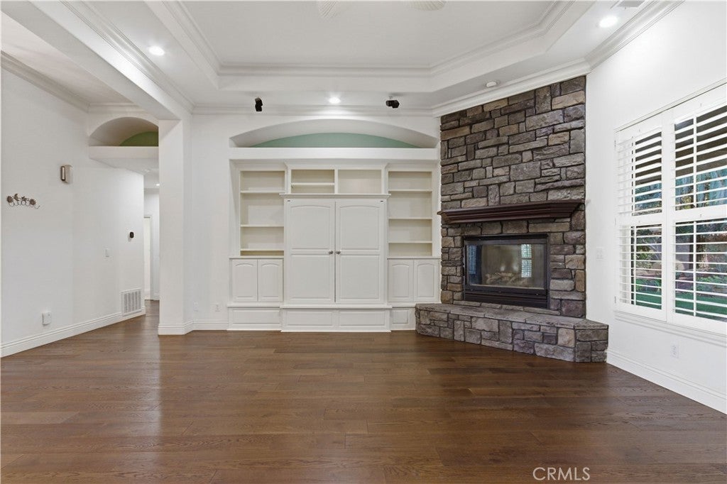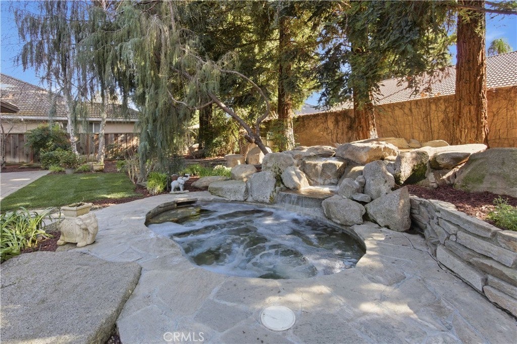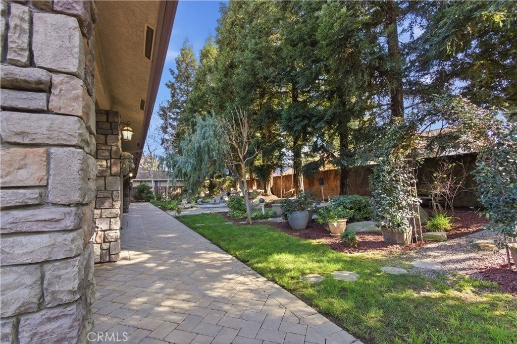 Located in the prestigious Camelot Estates gated community in Central Merced, this stunning 4-bedroom, 3-bath home offers over 2,800 sq ft of luxurious living space on an expansive 12,909 sq ft lot. From the moment you arrive, the elegant stone paver driveway and entry way, custom leaded glass front door, and three-car garage set the tone for exceptional craftsmanship throughout. Step inside to soaring tray ceilings, plantation shutters, and an open-concept layout anchored by a dramatic rock gas fireplace. The gourmet kitchen boasts granite countertops, a large island, matching KitchenAid appliances, abundant cabinet storage with pull-outs, and a spacious walk-in pantry. Retreat to the serene primary suite featuring dual master closets, a gas fireplace, tray ceilings, dual vanities, a bidet toilet, and a relaxing Jacuzzi tub. Additional highlights include an indoor laundry room with sink and pull-out ironing board, surround sound speakers, crown molding, 2 water heaters, 2 thermostats/HVAC's and thoughtful upgrades throughout. Out back, enjoy a Pebble Tec spa, covered patio, mature landscaping, and custom stone rock pillars—perfect for entertaining or relaxing in style. With easy access to shopping, dining, and top-tier amenities, this is luxury living at its finest.