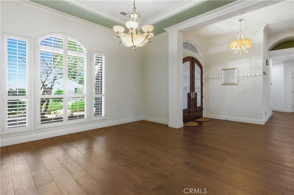 • Interior FeaturesCrown Molding, Granite Counters, High Ceilings, Open Floorplan, Pantry, All Bedrooms Down