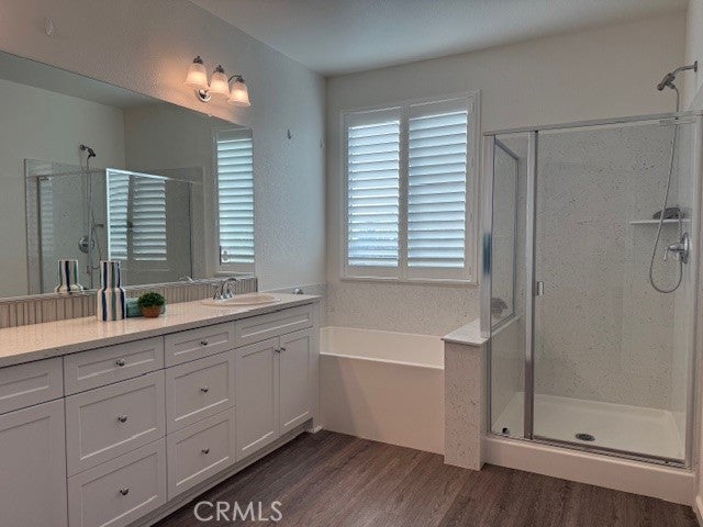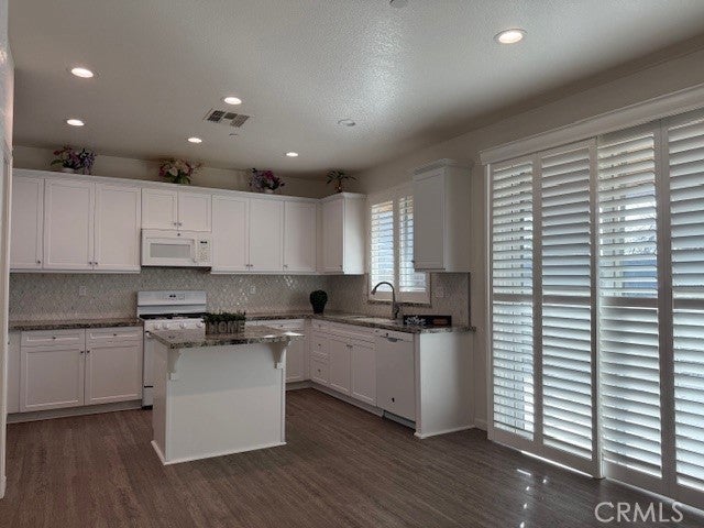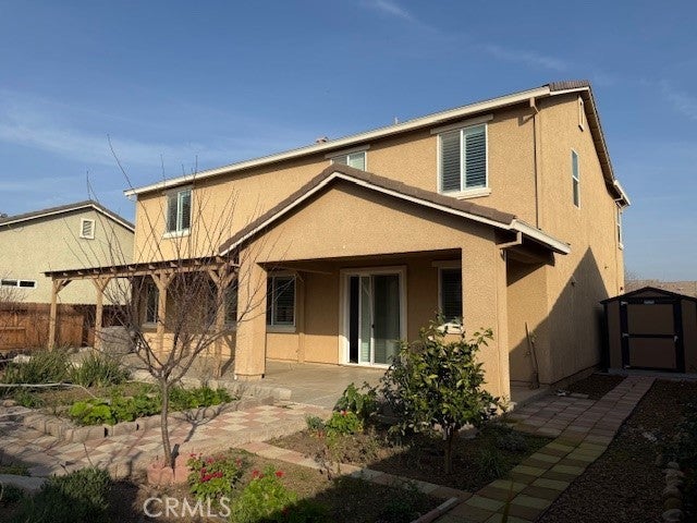 Come take a look at this 5 bedroom home with almost 2700 square feet with 1 bedroom and full bathroom downstairs making it ideal for guests or extended family. The heart of the home is the great room that's open to the amazing kitchen - featuring sleek white cabinets and GE appliances that make cooking a joy. Just off the great room, a versatile private space perfect for a cozy home office, play room, or that needed "extra" room. It could also easily transformed into an additional 6th bedroom. Upstairs you'll find 4 more bedrooms, 2 full bathrooms and a small loft area. The upstairs laundry room has cabinets, sink and plenty of counter space to fold clothes. Upgrades include: premium GE appliances, vinyl plank flooring, tankless water heater, elegant plantation-style shutters (valued at $20,000) that add a touch of comfort and timeless style. Enjoy time in the backyard, relaxing on the very large custom design covered patio and pergola. Backyard landscape includes some drought tolerant plants, auto sprinklers and nice shed. This home would be perfect for large families or for those who love space.