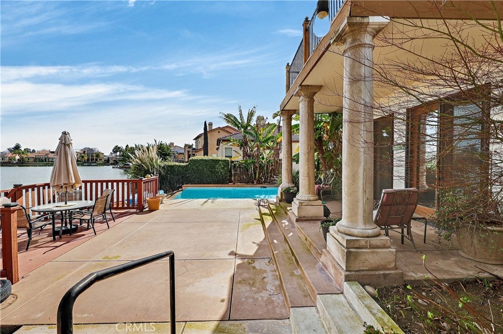 HUGH PRICE REDUCTION!! Former model home on the lake with the most amazing views! This home has so many upgrades, too numerous to list. This home has everything from a gourmet kitchen, Infiniti pool, boat dock, cabana area, 4 bedrooms, 3.5 baths, 3 fireplaces and a full Casita, giving you a total of 5 bedrooms and 4.5 baths. Just off the kitchen there is a butler's pantry that makes a great bar or coffer bar, depending on what time of day it is. The master suite has its own fireplace, balcony, jetted tub, walk-in shower, and 2 master closets. There is also an extended driveway with a 3-car garage for your toys. The home also has paid solar panels, a water softener and a paddle boat paddle boat to enjoy the lake. This is truly a must see to appreciate.