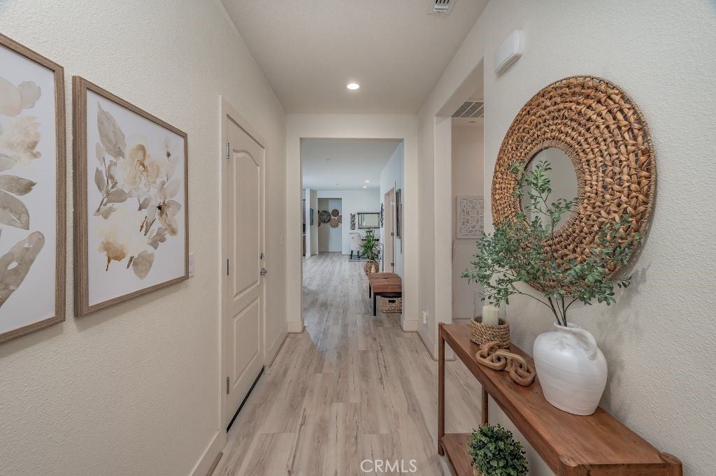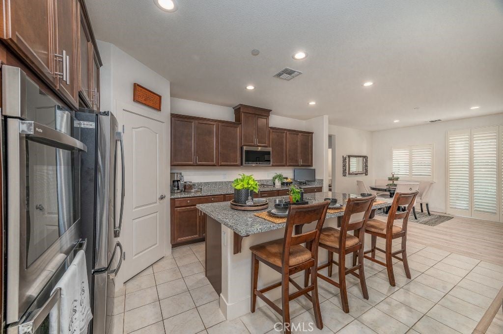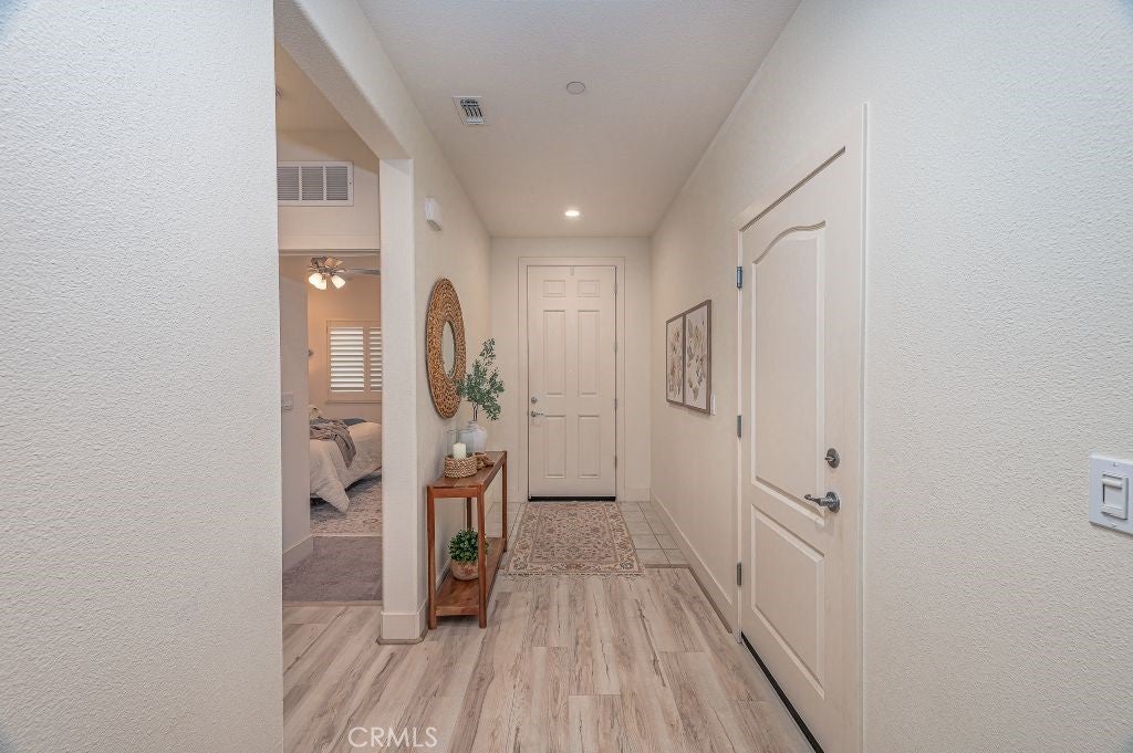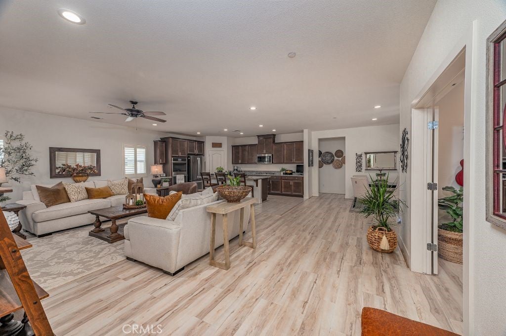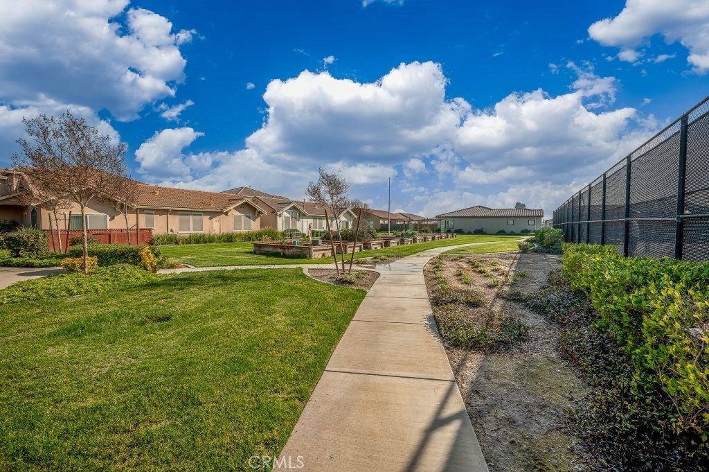 Welcome to 869 Grace Drive, a beautifully updated home in Los Banos' premier 55+ gated community. Designed for comfort and ease, this move-in ready residence offers a bright, open floor plan filled with natural light and modern upgrades throughout. Enjoy a premium corner lot with no direct neighbors and a chef's kitchen featuring GE Profile appliances, double ovens, a large island with a sink, and a new GE cabinet-depth refrigerator. The home showcases premium LVP flooring, wood shutters, fresh paint, and stylish lighting and ceiling fans in every room. Step outside to a freshly landscaped backyard and side yard with a retractable awning, patio seating area, and timed exterior lighting perfect for relaxing evenings. Additional highlights include solar power for energy efficiency. Residents enjoy a vibrant, amenity-rich lifestyle with a clubhouse, gym, pool, tennis courts, RV/boat parking for added flexibility and a variety of group activities. Experience relaxed, modern living at 869 Grace Drive!