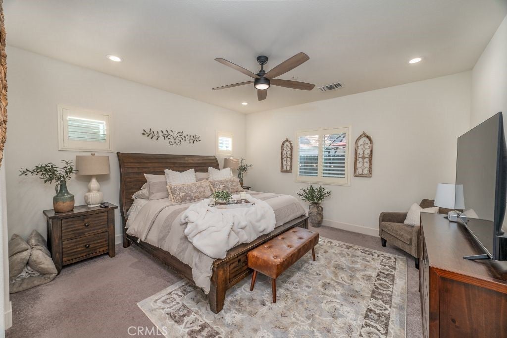 • Interior FeaturesBreakfast Bar, Ceiling Fan(s), Granite Counters, High Ceilings, Open Floorplan, Recessed Lighting, All Bedrooms Down, Bedroom on Main Level, Main Level Primary, Primary Suite, Walk-In Closet(s)