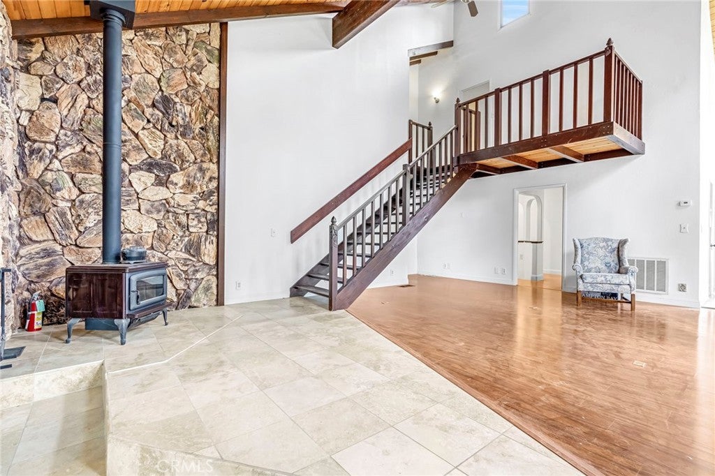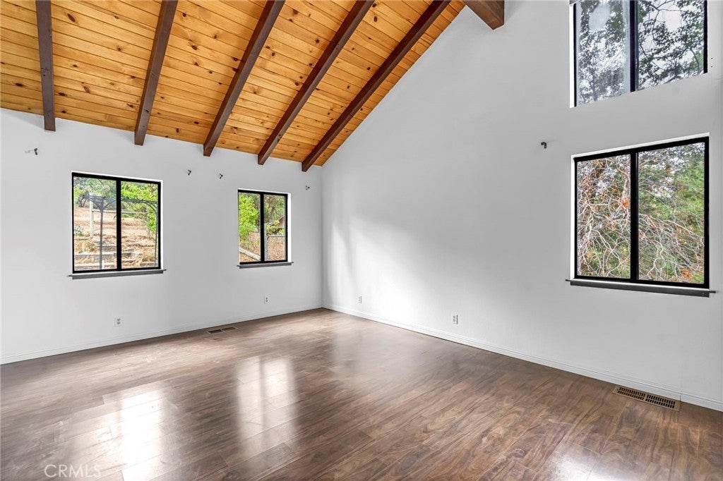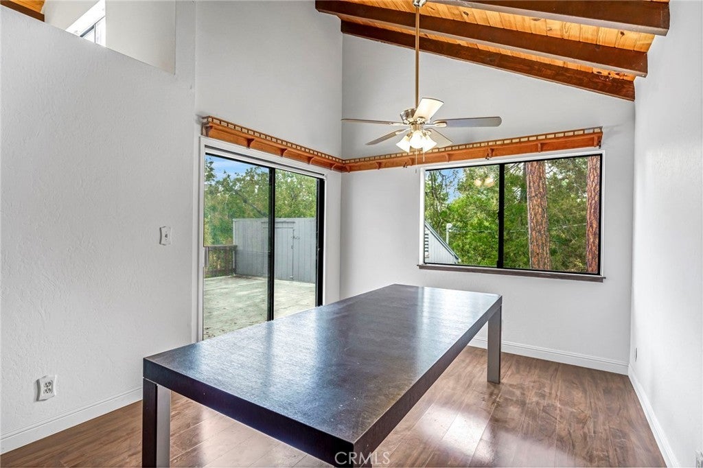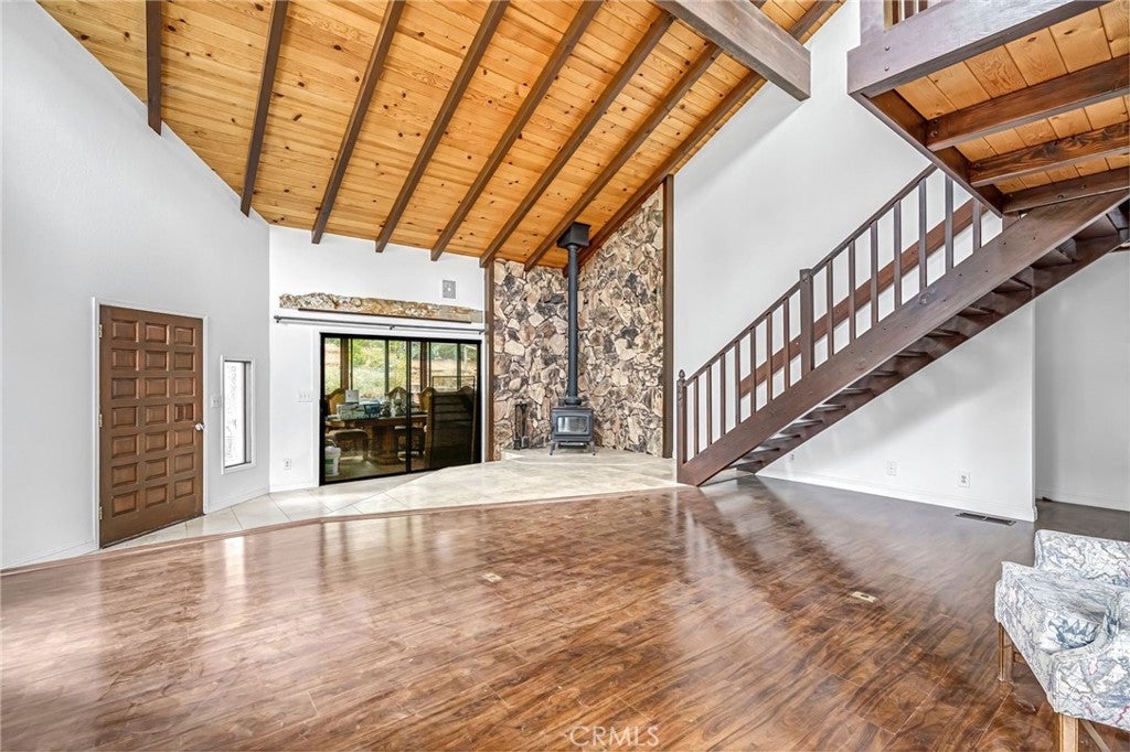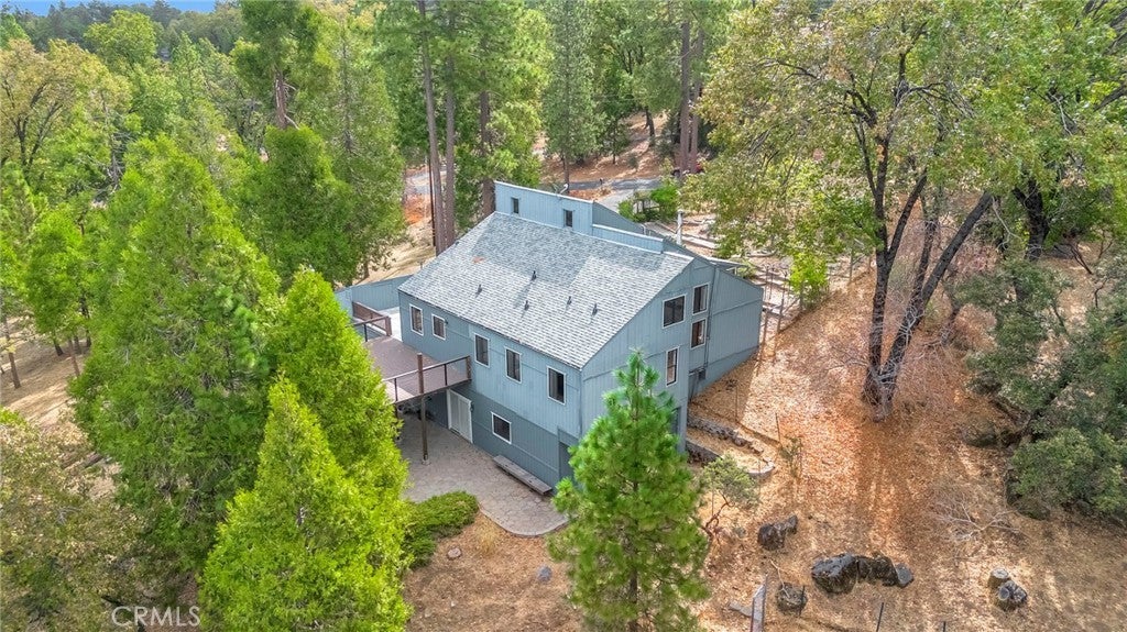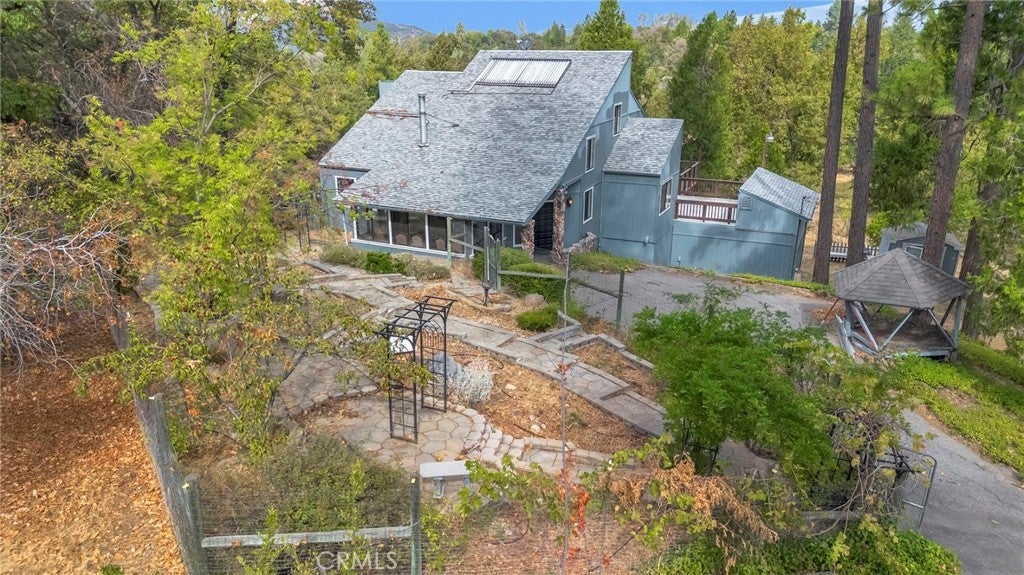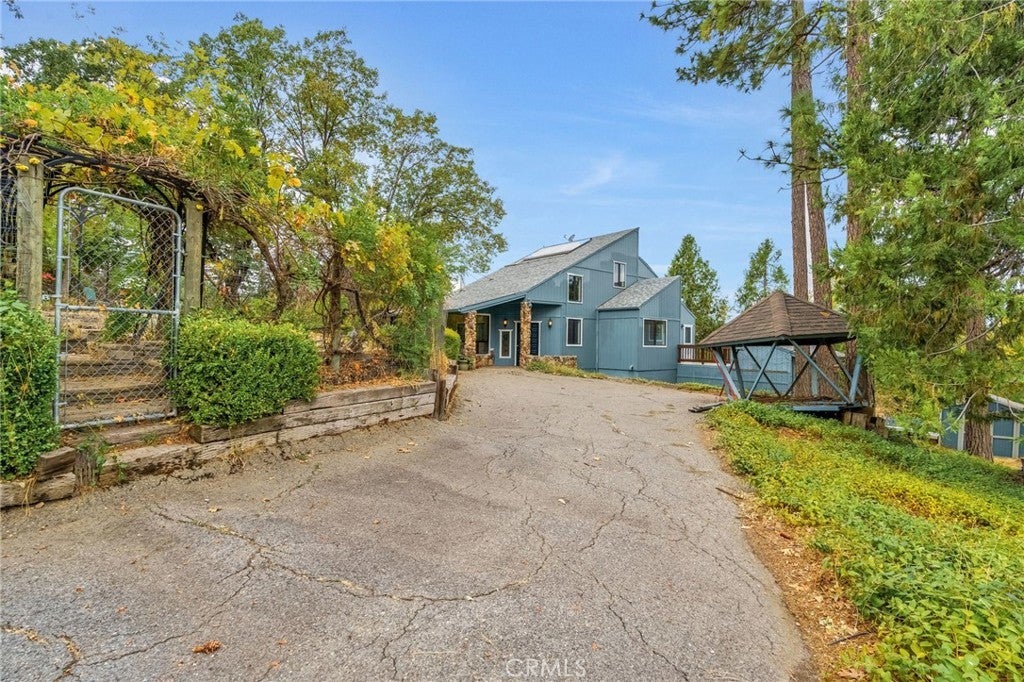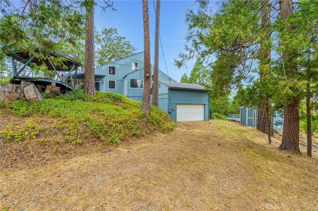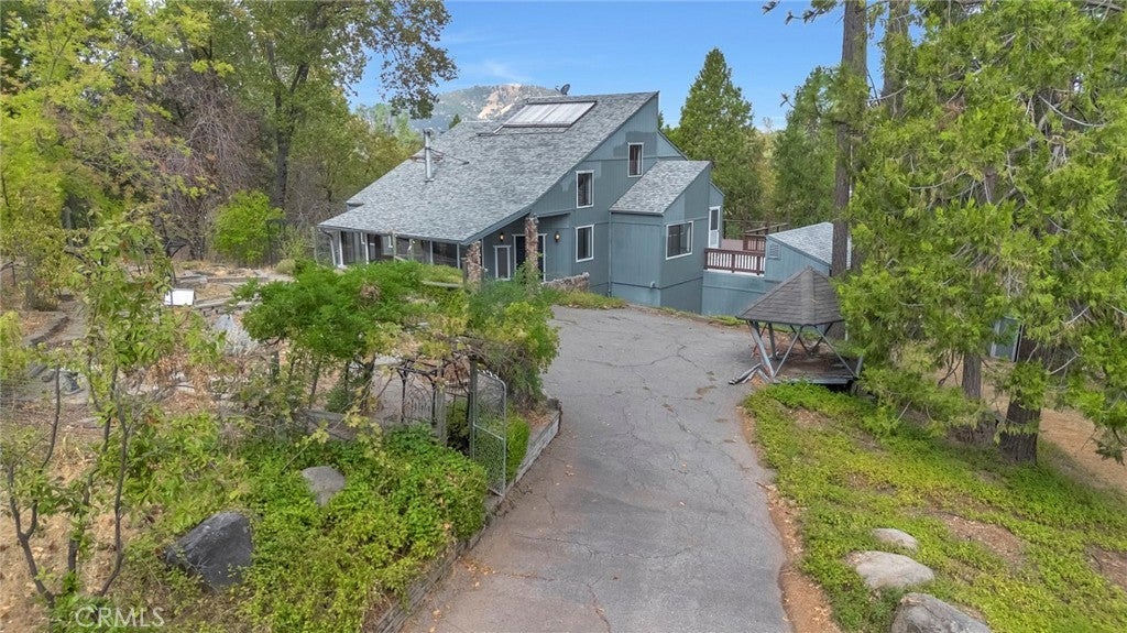Welcome to 37068 Mudge Ranch Road, a unique tri-level mountain retreat you won't want to miss. Enter into the grand living room featuring vaulted ceilings, abundant natural light, hardwood flooring, a cozy fireplace, a formal dining area, and access to the covered front patio. The kitchen offers granite countertops, newer appliances, a pantry, and deck access with views of the surrounding trees and landscape. The main floor includes the primary suite with a spacious bathroom and large closet, plus an additional bedroom, guest bath, and storage. Down the circular staircase, you'll find a private bedroom with its own bathroom, access to the backyard, a large utility closet, and the two-car garage. Upstairs, a fourth bedroom with a closet offers mountain views and completes this versatile layout. This property combines privacy, comfort, and scenic beautya truly one-of-a-kind home. Schedule your showing today!