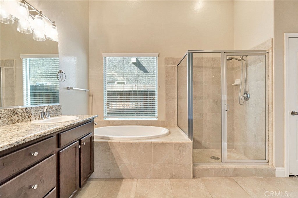 Oh honey, this is the perfect house for us! Step into this stunning two-story home featuring four bedrooms and three baths with approximately 2,456 sq. ft. of living space and an attached two-car garage on a 4,900 sq. ft. lot. The primary suite is conveniently located on the first floor, ideal for a growing family. From the moment you arrive, the home’s charming curb appeal draws you in. Inside, you’ll love the spacious open layout, high ceilings, tile flooring, and modern windows that fill the home with natural light. The modern kitchen offers granite countertops and stainless steel appliances, perfect for any home chef. The primary bathroom features a soaking tub, standing shower, and his-and-hers sinks. Upstairs, you’ll find three spacious bedrooms, a large loft, and plenty of room to unwind. The backyard is perfect for family gatherings and entertaining. This home truly has it all — space, style, and comfort. It’s a must-see!