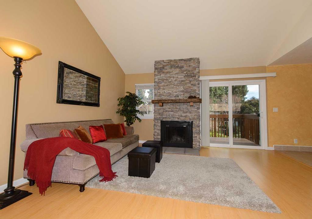 Beautiful top floor condo in the heart of Fremont! Move in ready! Vaulted ceilings. Updated bathrooms. Gorgeous stone fireplace. Wood flooring. Balcony. Dual Pane. Custom window blinds. Great storage. Private garage. Close to schools, shopping, BART, & hospital. Open House Sunday 2/15 1-4pm