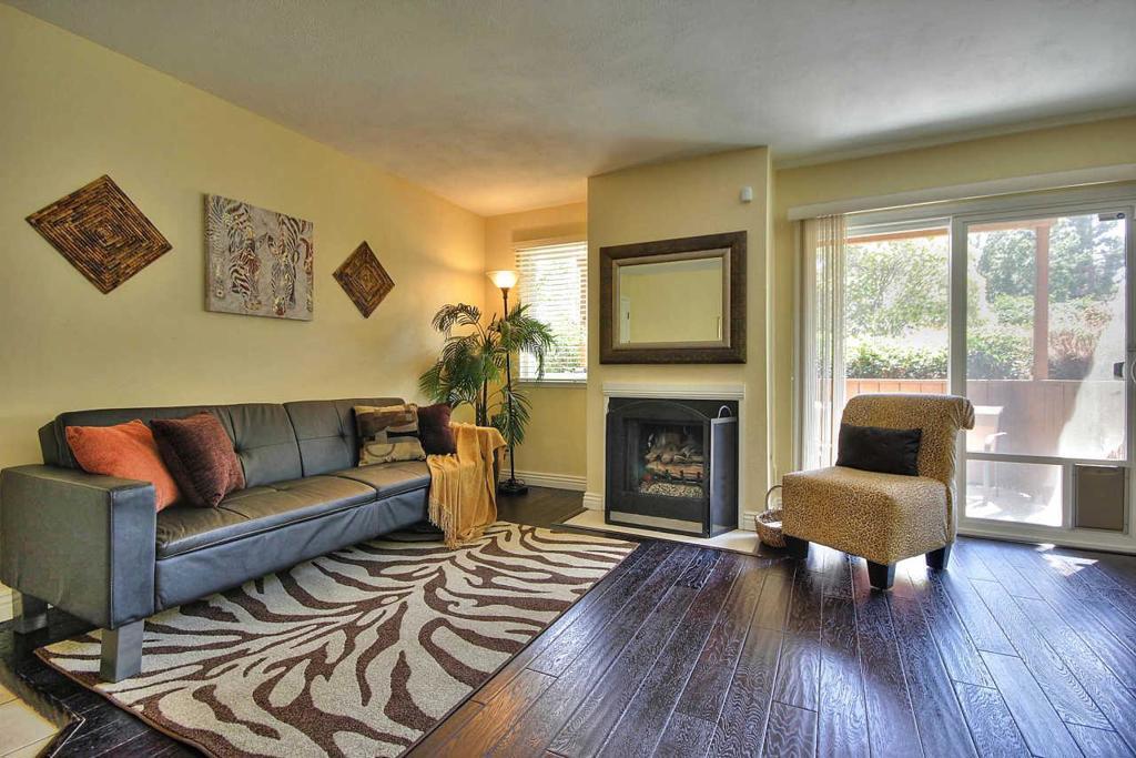 WOW! This is it! Gorgeous ground floor end-unit overlooking greenbelt in secure complex! 2 car garage! Updated kitchen w/Corian counters & maple cabinets. Loaded w/upgrades incl. gleaming hardwood floors, gas fireplace, central A/C, dual pane windows, alarm system & more! Close to BART, Whole Foods!
