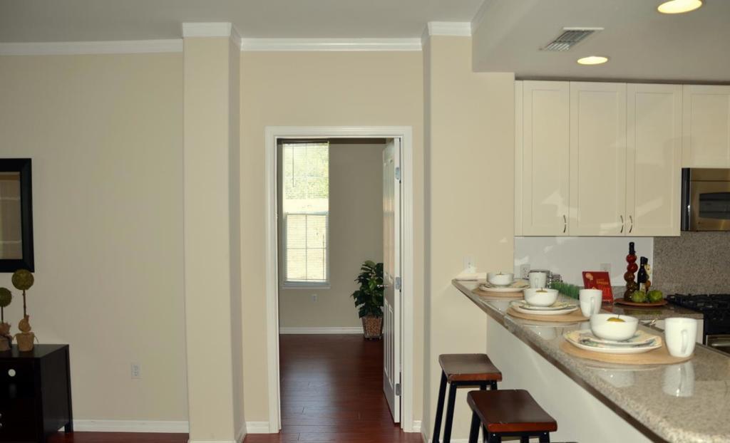 Fantastic first floor location on quiet side of complex. Bright and spacious home features open floor plan, high-end cherry laminate wood flooring, custom paint, granite counters in kitchen & baths, stainless steel appliances w/gas cooktop, built in microwave, breakfast bar, separate utility room w/full sized washer/dryer. Master suite w/walk in closet. Enjoy Miraval's lap pool, BBQ area, fitness, club house. Centrally located with easy access to major freeways, shopping, restaurants,walking trails & more.