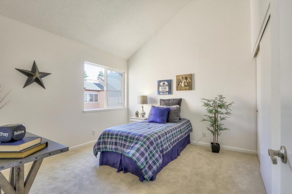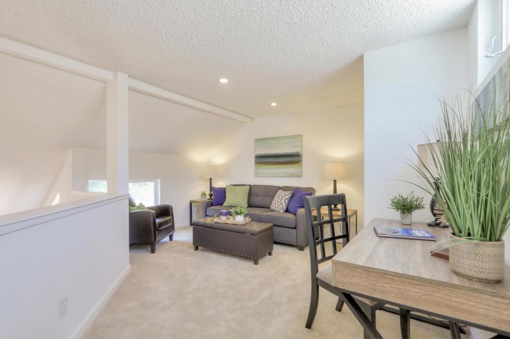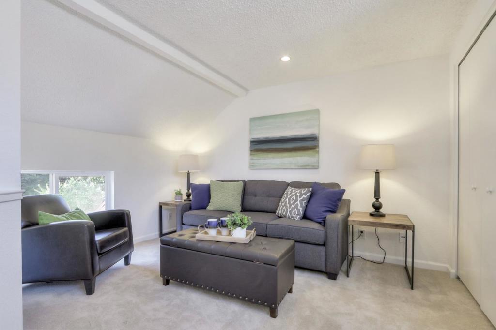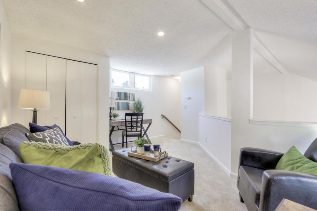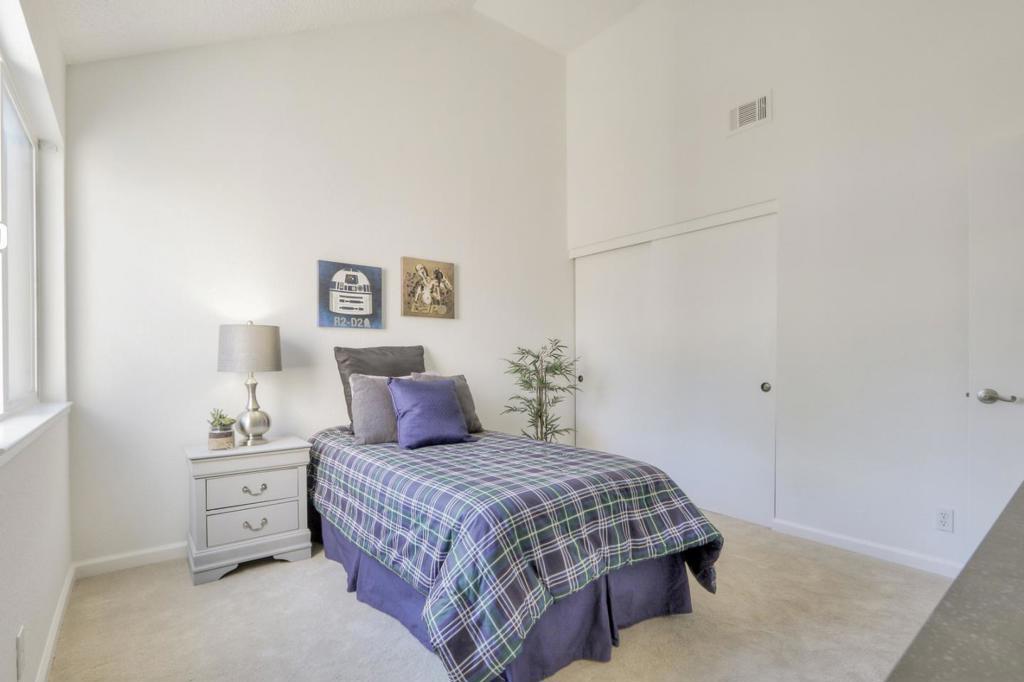 Beautifully updated, spacious, and move-in ready upstairs 3 bedroom 2 bath home in the quiet Tradewinds Community of Blossom Valley. You'll be impressed with the new laminate floors, new carpeting, soaring ceilings, and natural light. Not to mention the newly refreshed kitchen with recessed lighting, new range and dishwasher, white cabinets, and stone counters! Relax and unwind in the large master suite with vaulted ceilings, or enjoy your morning coffee on the private balcony just off the spacious living room. You'll also enjoy the recently and fully renovated hall bath with newer tile floors, tub, vanity, and custom tile shower. Top it all off with in home laundry, plenty of storage, a private 1 car garage, your own deeded parking space, and community pool! Just moments to shopping, parks, light rail station, hwys 85 & 87, and tech company shuttle stops. Come make this home yours!