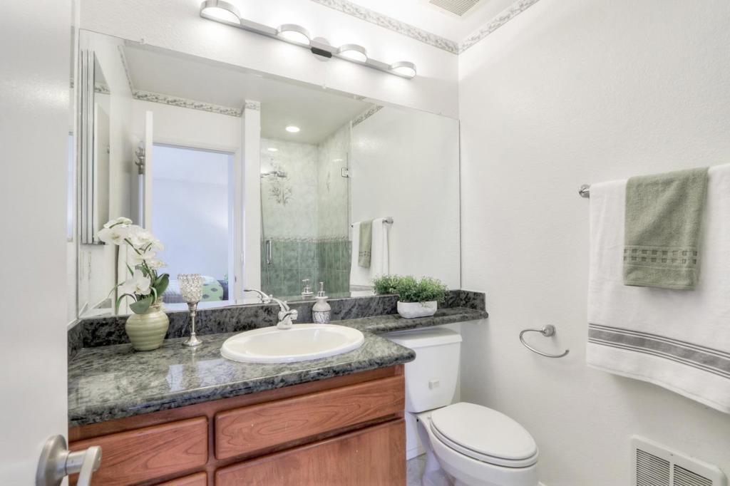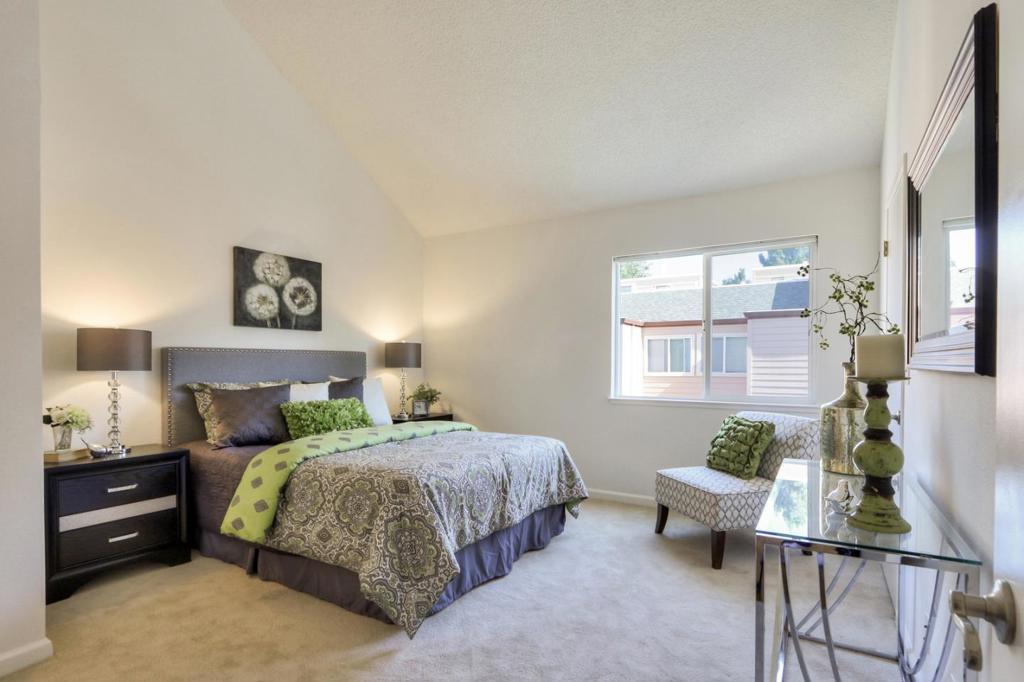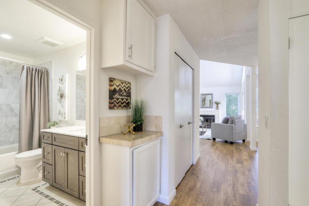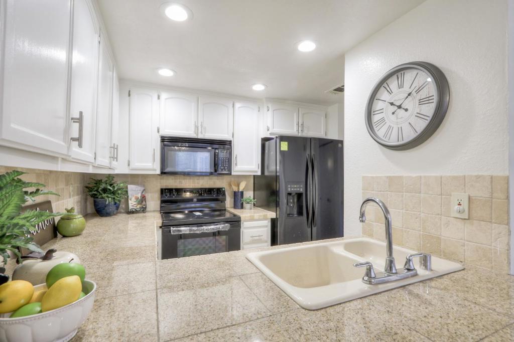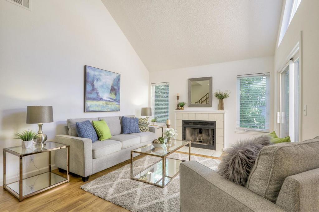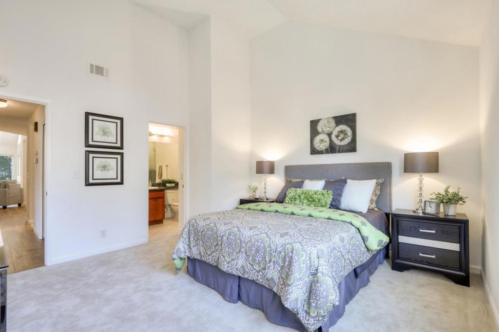 Beautifully updated, spacious, and move-in ready upstairs 3 bedroom 2 bath home in the quiet Tradewinds Community of Blossom Valley. You'll be impressed with the new laminate floors, new carpeting, soaring ceilings, and natural light. Not to mention the newly refreshed kitchen with recessed lighting, new range and dishwasher, white cabinets, and stone counters! Relax and unwind in the large master suite with vaulted ceilings, or enjoy your morning coffee on the private balcony just off the spacious living room. You'll also enjoy the recently and fully renovated hall bath with newer tile floors, tub, vanity, and custom tile shower. Top it all off with in home laundry, plenty of storage, a private 1 car garage, your own deeded parking space, and community pool! Just moments to shopping, parks, light rail station, hwys 85 & 87, and tech company shuttle stops. Come make this home yours!