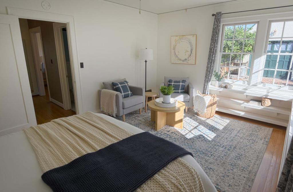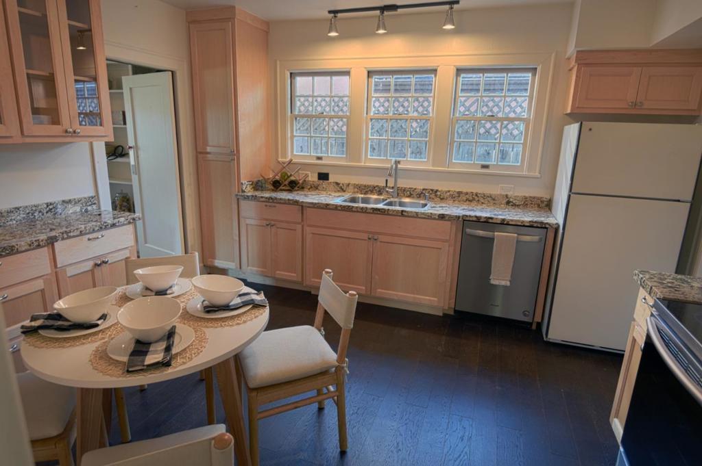On a tree lined street in the historic core of Hollister, this captivating 1929 Tudor revival retains a timeless elegance. Designed by the noted San Jose firm Binder & Curtis, it boasts the original hardwood floors, woodwork, French doors and windows which let in lovely light. There are large walk-in closets, picture rails, a delightful dressing room, and craftsmanship we don't see today. Each floor has over 1,600 sq. ft. with a living area, formal dining room, kitchen, 2 large bedrooms and a bath. The lower kitchen features granite countertops and custom cabinets. In the backyard you can enjoy the heritage roses or the brick patio perfect for alfresco dining. The separate 2 car garage could be a potential ADU opportunity for additional family or income, check with City. The home has so many potential uses. Live on one floor and rent the other, enjoy a multi-generational space, or as a large single family home as the back stairs can allow access between the floors if desired.