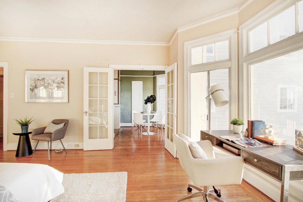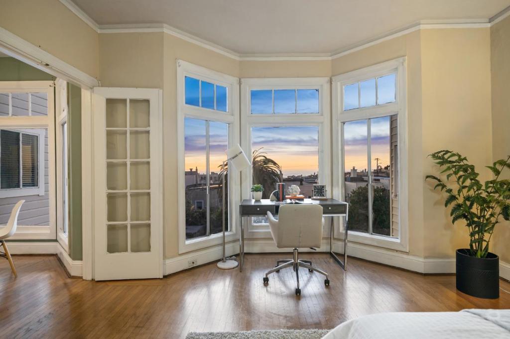 Gorgeous 3 Story Marina Style 4Plex - 4 Spacious Studios in Desirable Parkside Neighborhood! This building features large entry with original detail; each unit consists of large living & dining area, high ceilings, separate kitchen with gas stove, 1 full bath, huge closets, & hardwood floor. The 2 rear units can enjoy the beautiful twilight sunset & ocean views. Nice & huge backyard, and 4 car parking in garage. Steps to transportation, shop & top ranked schools. The 2 units on 2nd floor to be delivered vacant at closing. Great for owner to occupy and for investment. A must see!