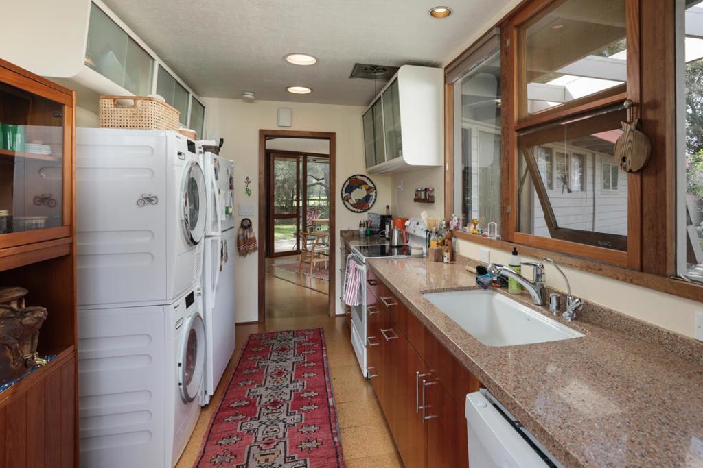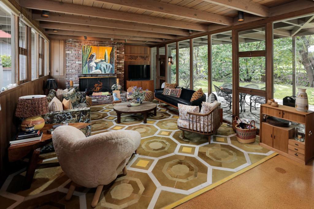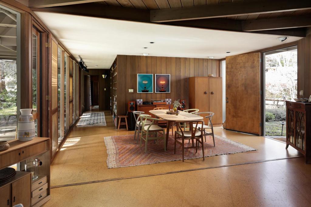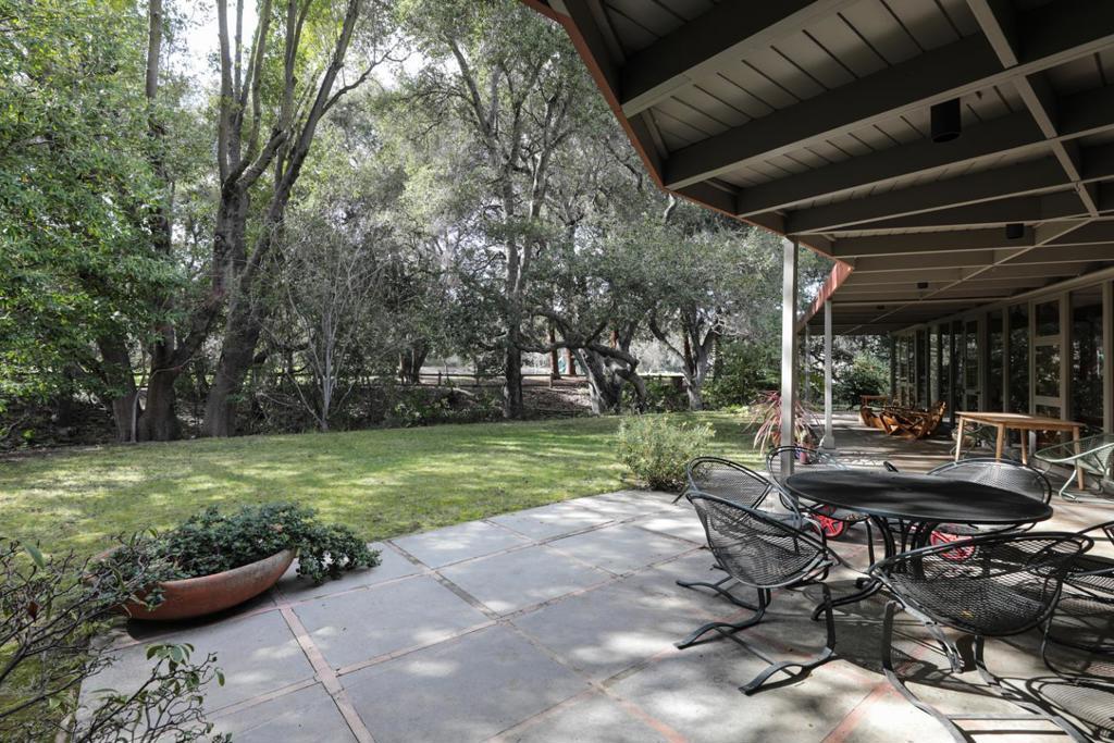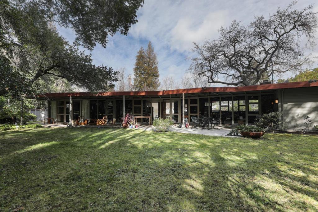 Incredible opportunity in tranquil private setting on roughly .44 acres (Roughly ~18,974sf) sits this stunning mid-century modern exuding all of the incredible qualities one seeks in a California lifestyle.Walls of glass draw you to the outdoors where nature is waiting.Beautifully updated throughout.Spacious living room/dining room combination w/fireplace & wood beam ceiling overlooks backyard. Updated eat-in kitchen provides access to a private patio. Primary suite w/original wood paneling & built-in vanity.Updated bathroom features a large walk-in shower.Creekside setting w/lush mature trees, redwood grove & green space offered by adjacent Bol Park, w/not another house in sight.A rare combination of an oversized lot, lush mature landscaping & privacy, and a sought A+ Barron Park location.Move right into this beautifully updated 2-bed 1-bath home, expand for a larger footprint or build new. 2-car garage.Close proximity to Stanford & acclaimed Palo Alto schools.