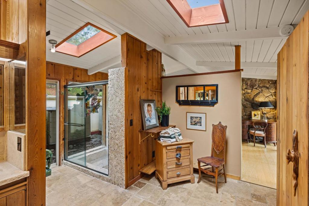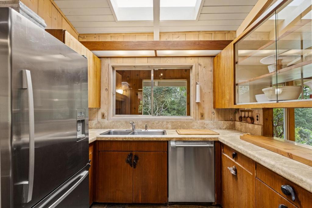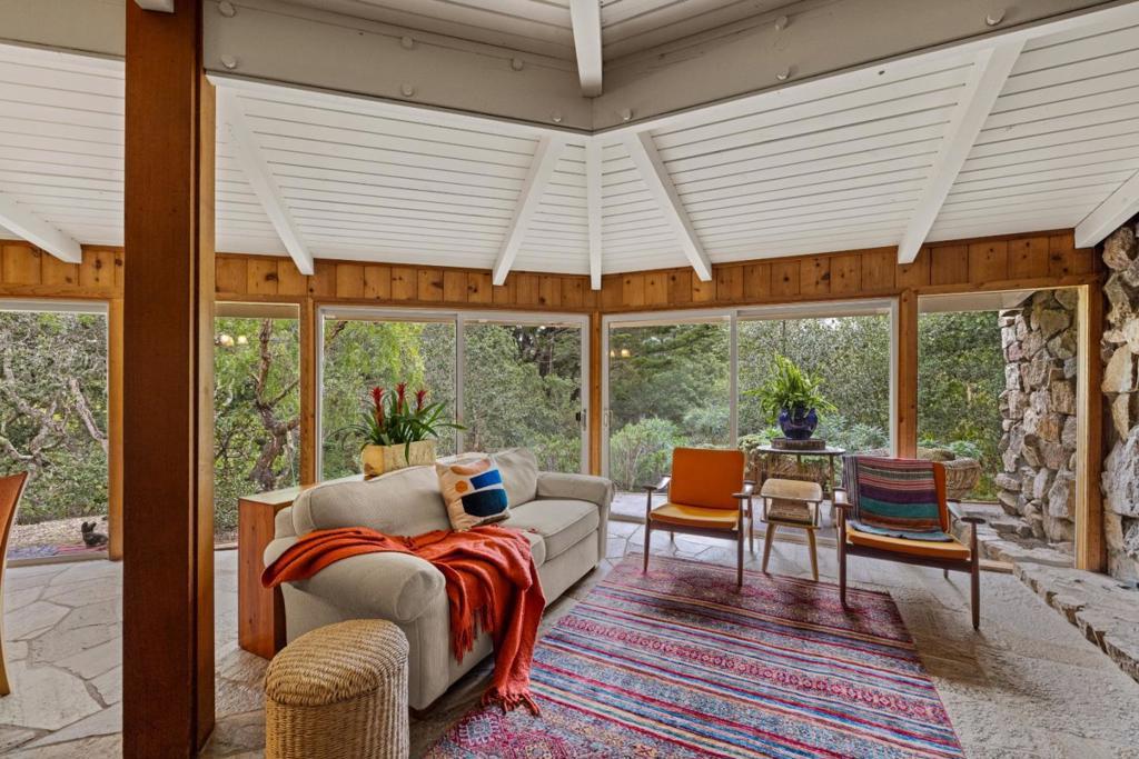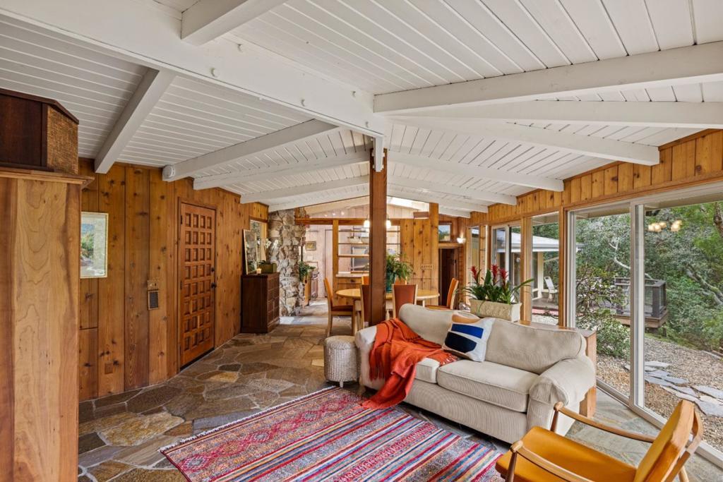 Discover the charm of 25970 Canada Drive, where a cozy cabin ambiance awaits. Nestled in the welcoming embrace of Big Sur in Carmel, this home is just half a mile from the entrance of Carmel Valley. A private, tree-lined driveway guides you to this hidden gem- secluded 3-bedroom retreat (currently using the 3rd bedroom as a den) with 2 baths. Inside, a grand golden granite fireplace graces the living room, casting its warmth throughout and becoming a stunning focal point on one bedroom wall. Floor-to-ceiling windows and sliding doors seamlessly merge the indoors with nature, offering picturesque views of the surrounding forest. This retreat promises tranquility and the allure of a cabin-inspired haven. Welcome home to 265970 Canada Drive.