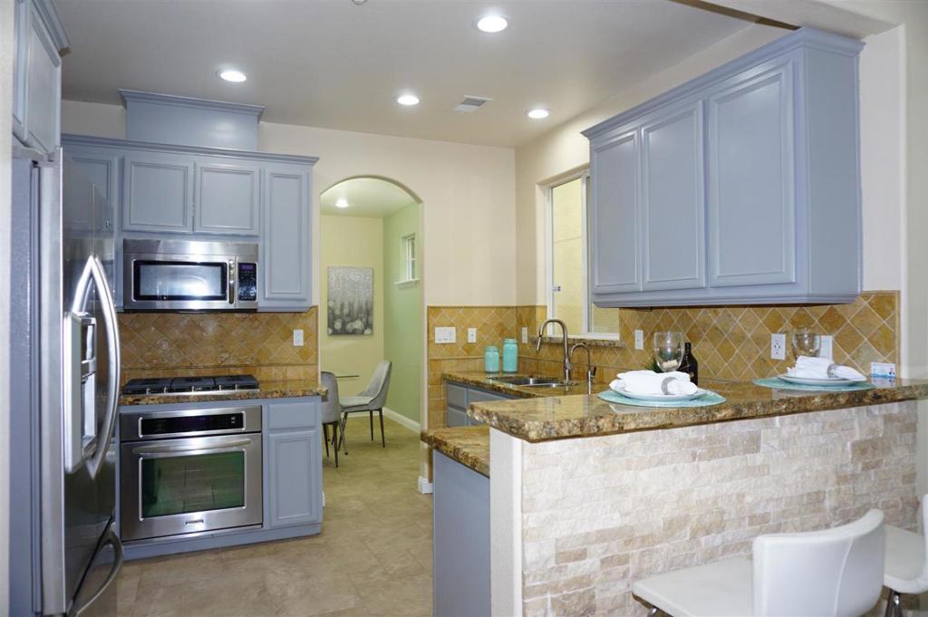 Discover this stunning, converted 3-bedroom (originally a 4-bedroom), 2.5-bathroom home situated in the charming city of Gilroy. The well-appointed kitchen features a premium Carmel Stone granite countertops, an updated 5-burner stove, oven range, and refrigerator. Enjoy your meals in the formal dining room, and the spacious family room for relaxation and entertainment. This home boasts a luxurious master suite fitted with custom lighting, crown molding, plantation shutters, travertine floors, adding both comfort and sophistication. The stunning en-suite is upgraded with marble, heated floors, premium imported granite countertops, beautiful stone tile backing, imported European Kohler faucets, low flow Kohler toilet, a full stand-alone tub and a glass encased, water fall shower. The other bathrooms are modern and updated, with double sinks, granite countertops, oversized tub, stall shower, and tile details. Stay warm by the fireplace during cooler evenings. The community facility features a pool, perfect for leisure and recreation. Residents will appreciate the Tesla electric vehicle hookup (Level 2), solar power, a 2-car garage and the home's location within the Gilroy Unified Elementary School District. Don't miss the opportunity to make this beautiful property your new home.