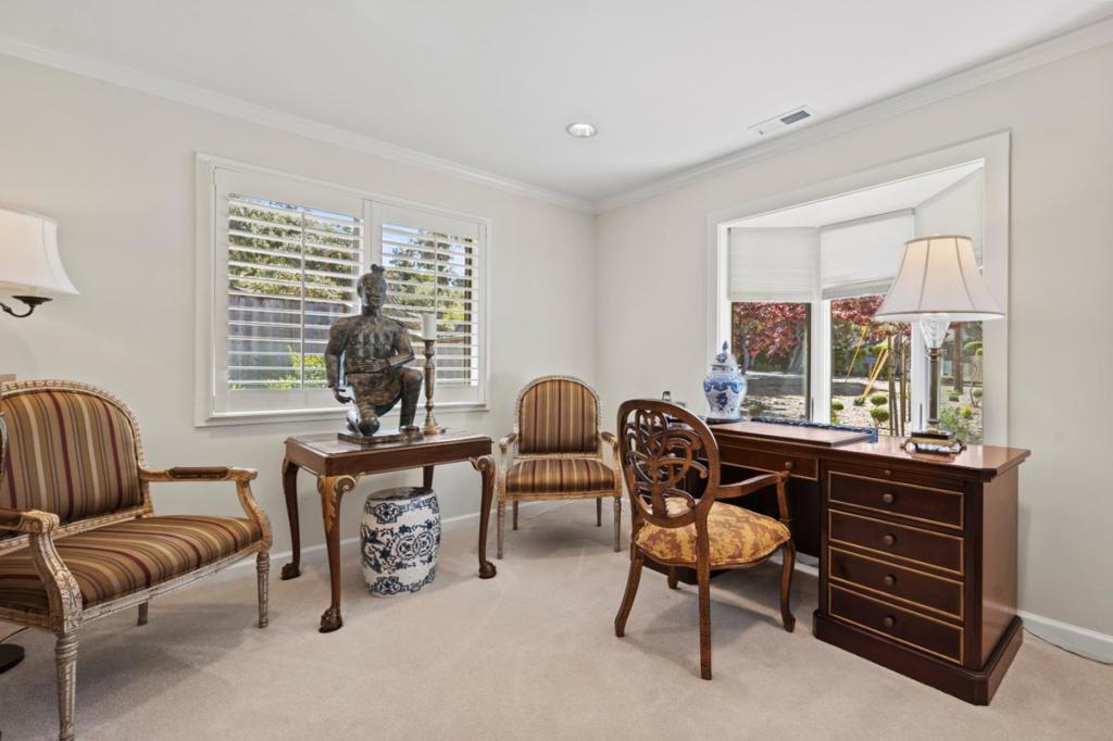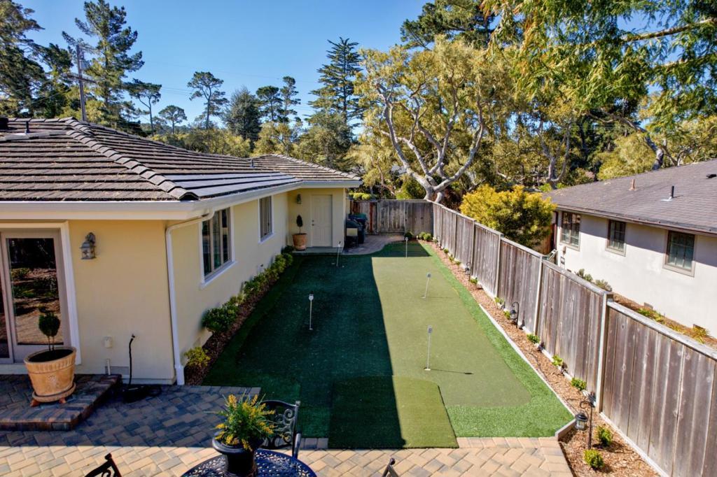 Quality and value converge in beautiful Pebble Beach. This immaculate single-story home is tailored for the discerning buyer seeking a truly turnkey residence - nothing to do but move in & enjoy. Rich cherry wood flooring & custom cabinetry bring warmth & sophistication to the open-concept kitchen, dining, & living areas. Featuring 3 bed/2 baths, the home offers seamless indoor-outdoor living with impeccable taste. Showcasing high-end finishes & premium materials throughout, enjoy Grohe fixtures, travertine marble baths, plantation shutters, crown molding. Outdoors, a private putting green, convenient circular drive, generator, & low-maintenance stone pavers enhance the homes polished design. A charming 'little house' serves as a versatile space, ideal for an artist's studio, or office. Modern comforts include a new TRANE heating system with HEPA filtration, a new water heater, Bosch appliances, in-house fire suppression system, and a spacious pantry with ample storage. For safety, trees have been removed & property is in compliance with Cal-Fire safety provisions. Nestled in a tranquil neighborhood with close proximity to MPCC, Spanish Bay, hiking trails, and the breathtaking Pacific Ocean, this exquisite retreat offers the perfect blend of elegance and coastal serenity.