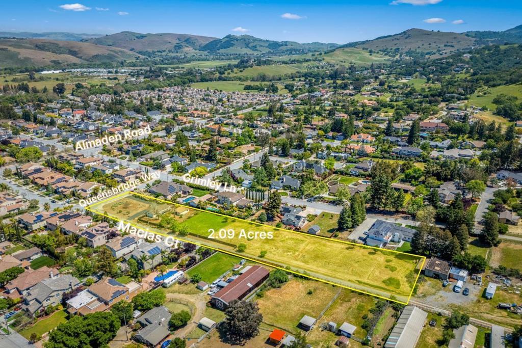 Location, Location, Location! This property offers over 2 acres (91,000 SqFt) of relatively flat land in the heart of Almaden Valley. This is one of the last parcels of its kind in Almaden. Located within the San Jose City limits and is currently zoned Single-Family Residential/Rural Residential R1-2 (up to 2 dwelling units per acre.) The adjacent planned development at Queensbridge Way & Macias Lane (approximately 25 total dwelling units built out by Robson Homes in approximately 2003-2005) achieved a Planned Development Density of 4.4 units per acre. Refer to Rezoning File PDC03-087 at the City of San Jose for the specifics of that development. The 1 acre parcel across the street (formerly 1126 Barnes Lane) was developed into 4 dwelling sites by Edenbridge Homes circa 2013 San Jose File #22411136. The subject parcel is within the Urban Growth Boundary and Urban Services Area per the City General Plan 2040 map. Surrounded by high end expensive homes and top Almaden schools (Williams, Bret Harte and Leland.) Could be a possible SB 330 project. Buyer is advised to verify and do all investigation with the City of San Jose regarding intended use, zoning and density. Home is occupied and do not trespass on the property.