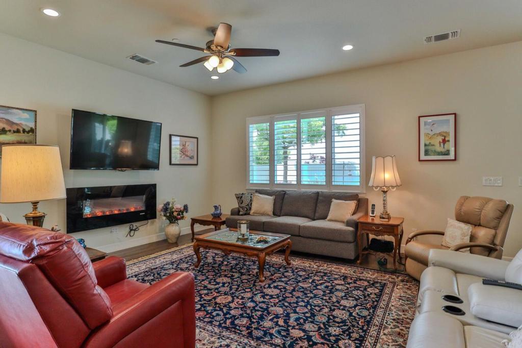 Discover refined living in the vibrant Woodbridge 55+ community! Enjoy an active lifestyle with access to Multiple NEW Pickleball Courts, a clubhouse, indoor/outdoor pools and spas, fitness center, library, billiards, tennis, putting green, and a stocked lake for catch and release fishing. Outdoor amphitheater for Summer concerts. With clubs and activities, this community fosters connection and engagement. This stunning 8 year old, 2,509 sqft corner lot home offers 3 spacious bedrooms, 2 modern bathrooms, and a versatile den ("snore room"), ideally situated across from Liberty Parks scenic walking trails. Owned SOLAR Home!! The gourmet kitchen boasts ample cabinetry and flows seamlessly into an open concept living area, perfect for entertaining. Retreat to the expansive master suite with a luxurious en suite featuring a sunken tub. Additional highlights include formal and casual dining spaces, generously sized guest bedrooms, a low-maintenance backyard oasis, and paid Solar Panels. Don't miss this exceptional home in an unparalleled location, schedule your tour today!