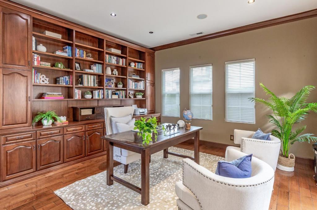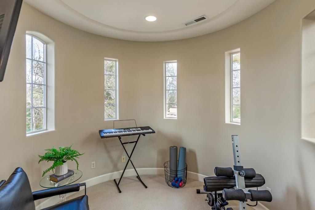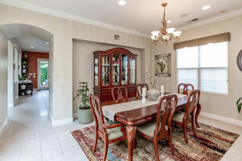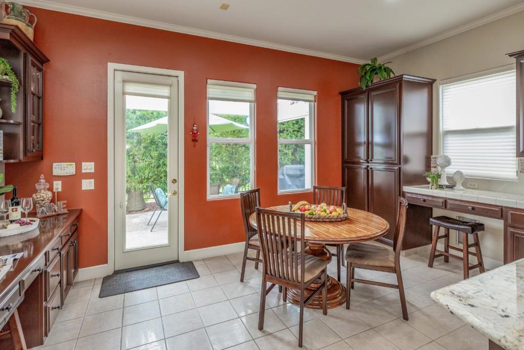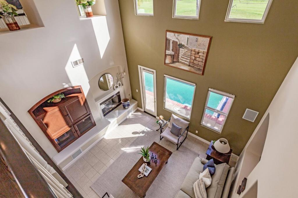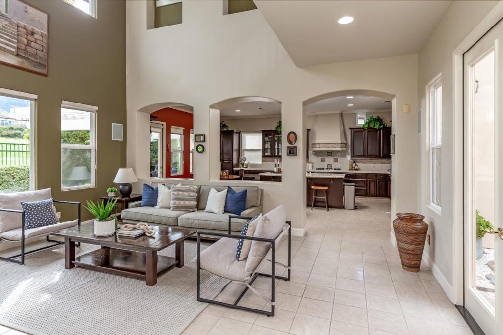 This lovely Birkdale model is located in the gated community of Eagle Ridge Golf Club. Positioned on the 11th fairway with Uvas Creek in front of the home. The office includes built-in cabinetry and wood floors. Large formal dining room. The kitchen offers tile counters along the perimeter with a granite counter and a sink in the island with a breakfast bar. The kitchen opens to the family room with a fireplace and built-in entertainment center. The center courtyard is encircled by French doors from the office, dining room and family room. A separate 1-car garage is included as well. There is a laundry room, full bathroom and a bedroom with wood floors and a walk-in closet on the first floor. The primary bedroom features French doors to the balcony for beautiful golf course views. The primary bath includes a large tub flanked by 2 vanities, stall shower and 2 walk-in closets. The front bedroom has views of the wooded area along Uvas Creek from the balcony. There is a full bath in the hallway with light up mirrors over each sink and custom tile in the shower. The third bedroom features golf course views. You will also find an alarm system, crown molding and built-in speakers. Beautiful lap pool with a waterfall and spa plus a pergola just outside the kitchen door.