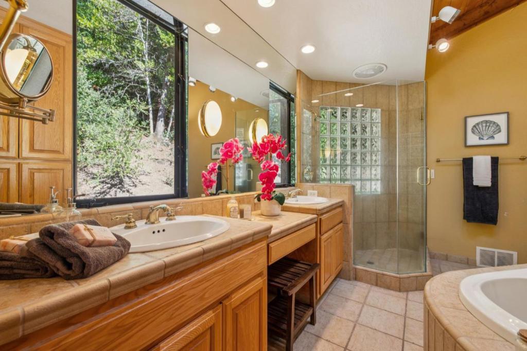 Conveniently located in the coveted 'Villa del Monte' neighborhood, for easy access and proximity to local amenities. The home enjoys a peaceful and secluded, elevated setting with serene tree views. Formal entry opens to the living room with high ceilings, fireplace. Beautifully remodeled open concept kitchen, dining and family room with gas fireplace, sliders to the back yard. Additional family/recreation room (or extra large 4th bed) on 2nd floor, with built in shelving and vaulted ceilings. Primary suite with remodeled bathroom, 2 further bedrooms each with spacious attic lofts and built-in ladders, hall bathroom. Awesome outdoor entertaining with custom outdoor kitchen and expansive patios. Attached 2 car garage. Great value for a large home in the Summit area, just minutes from the excellent Loma Prieta elementary and CT English Middle schools, Summit store, wineries and churches. Approx. 15 mins to downtown Los Gatos, LGHS. Served by Villa Del Monte water, Comcast. internet.