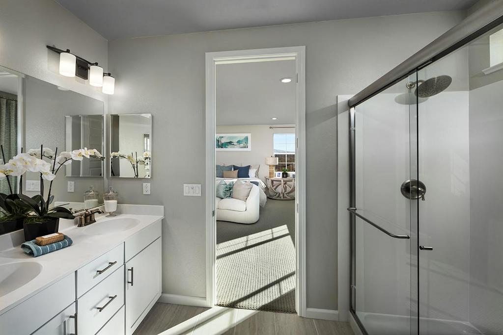 Discover the perfect blend of functionality and style in this brand-new move-in ready home. Entertain in the bright and spacious family area with sliding glass doors leading to your own private backyard. Prepare meals in your beautiful kitchen complete with granite countertops, an island with pendant lighting, and a walk-in pantry. Upstairs, a versatile loft awaits movie nights. Relax in the large primary bedroom and a spa-like primary bath with a walk-in shower and dual vanity sinks. Luxurious vinyl plank flooring at entry, family, dining and kitchen areas. Other features include 40-amp pre-wire electric vehicle charging station and a solar energy system (lease or purchase required), limited 10-year warranty. Schedule a tour today. Model photos shown.