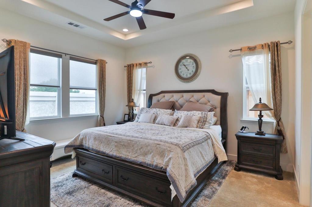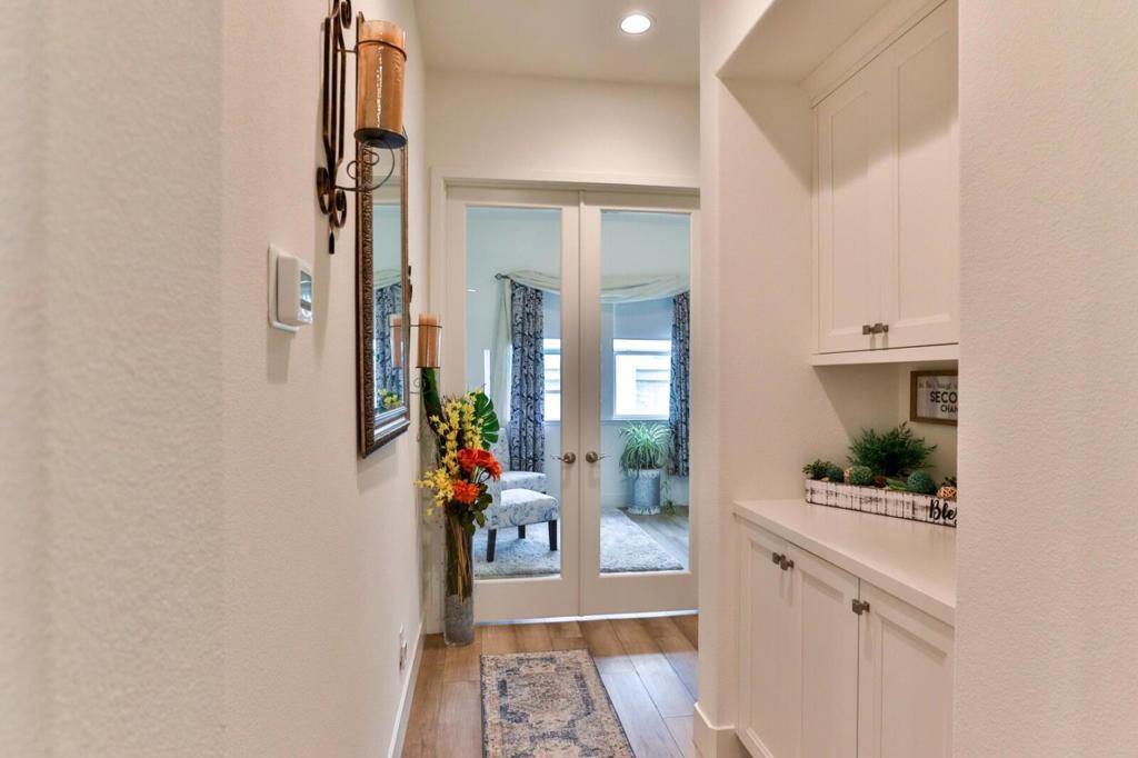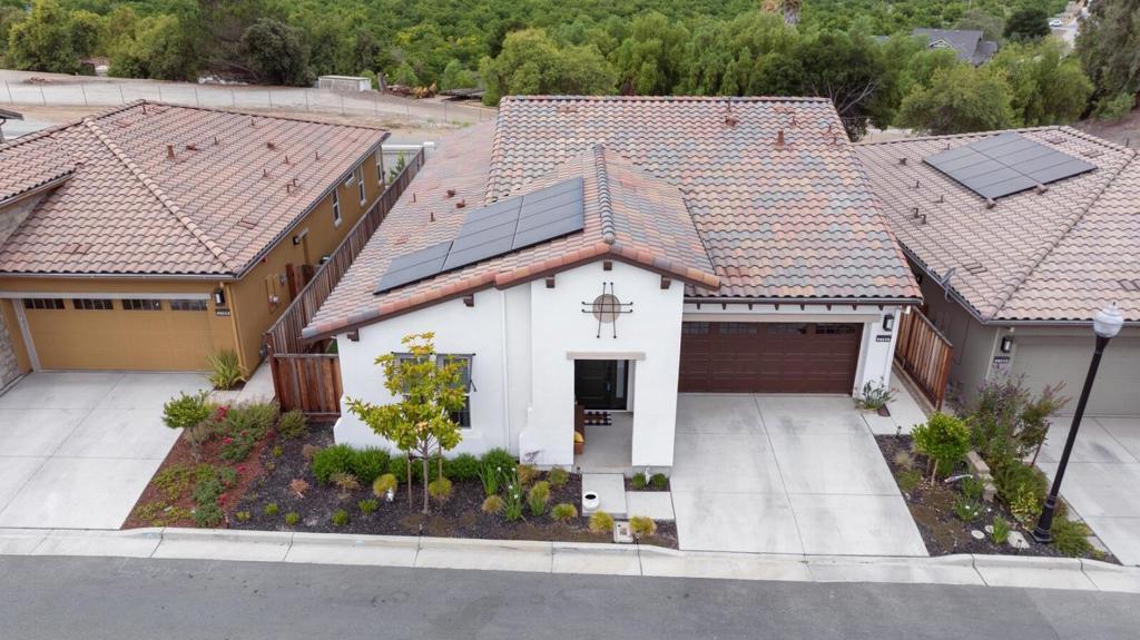Elegance nestled in Hollister's vibrant Twin Oaks 55+ retirement community. Welcome to this striking Spanish-inspired facade spanning 1902 sqft, 2 bedrooms, 2 baths, complete with a versatile office. The grandeur of 10-ft ceilings feels both expansive & intimate. The heart of the home is it's open living area, gourmet kitchen, spacious & warm dining & living room. Host friends for dinner in the chef-inspired kitchen, walk-in pantry & ample counter space. Living room opens to a covered patio, serene spot for morning coffee, sunsets, sip wine w/neighbors in your private outdoor oasis. Den offers a quiet reading nook, study, or sitting room to unwind with your favorite podcast. Every corner from its sleek finishes to it's thoughtful layout, reflect it's quality & still in sparkling new-home condition. Featuring a tankless water heater, water softener, OWNED solar, Reverse Osmosis system, & EV charging port. Twin Oaks offers concierge led amenities to bring neighbors together to foster friendships focusing on fitness classes, educational and culinary workshops, planned group travel itineraries and vibrant social events. The Cannery Club offers exclusive access to state-of-the-art fitness facilities, a chefs kitchen, movement yoga studio, pickleball courts, pool & more.